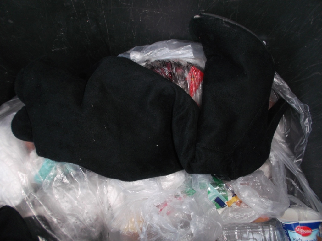 Wie das weiche Leder unter den bestimmt nackten Füssen gelitten hat. Vor Monaten neu gekauft, dann stolz angezogen und allen gezeigt und nun ein herzloses ende im Hausmüll.