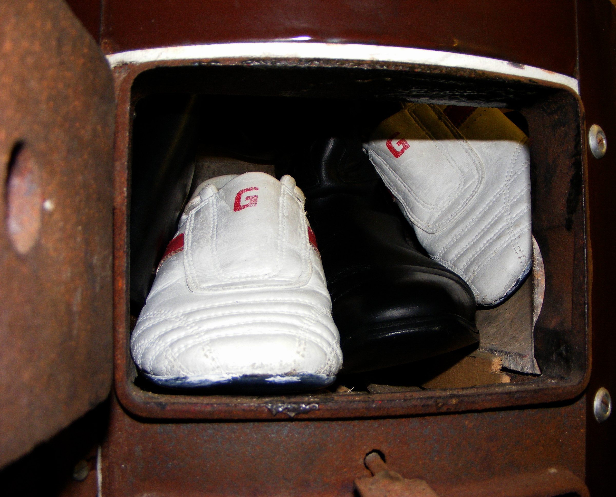 ² Zusammenfassung: Die von meiner BF im Sperrmüll gefundenen Reitstiefel sollten ja bekanntlich beim Essenkochen im Küchenherd Verwendung finden, doch sie bekam die steifen Stiefel nicht in das kleine Feuerloch. Zerlegen war keine Option. Hingegen, der Badeofen wäre mit ihnen problemlos "fertig" geworden; eine geeignete "Zuheizung" hätte sie perfekt Entflammt und in ein Häufchen grüne Asche verwandelt!