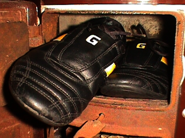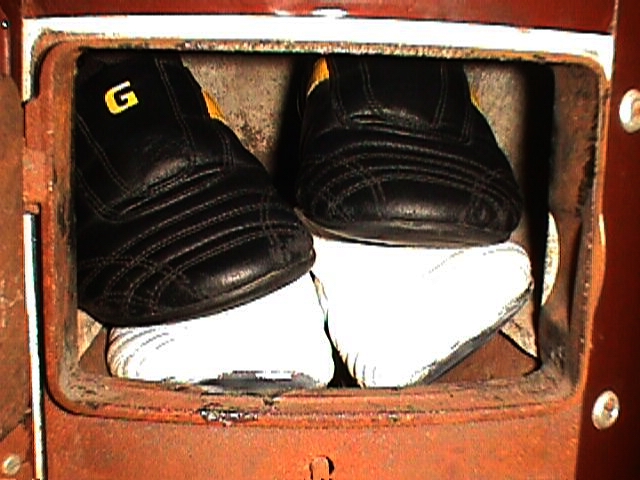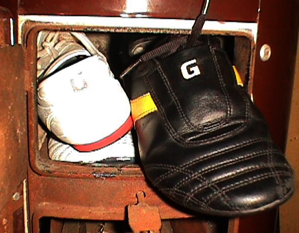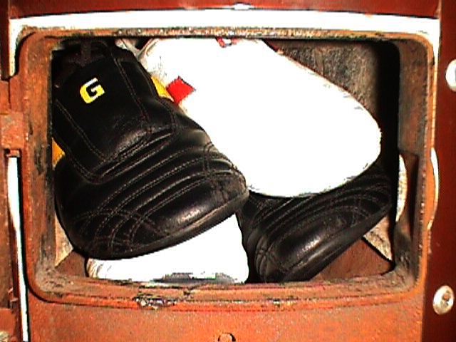 Heute gehen unsere "gesammelten" Sneakers zumeist an meine BF, weil sie für die kleinere Feuerungsöffnung des Küchenherdes ideal sind, dafür bekomme ich im Tausch von ihr erhaltungswürdige Lederstiefel zum Tragen. :)