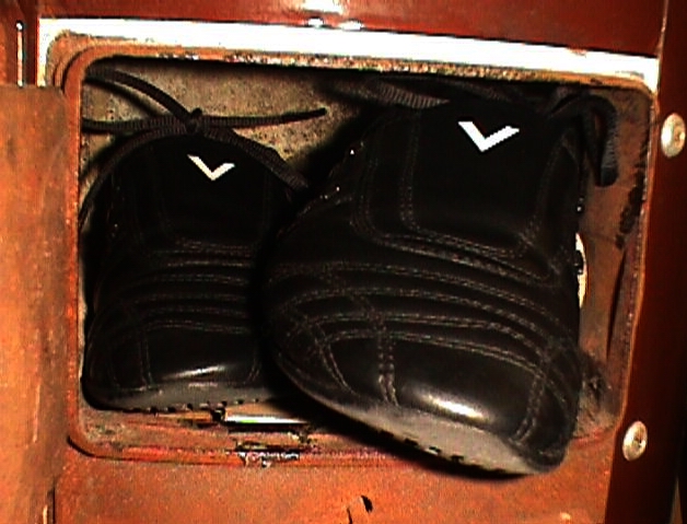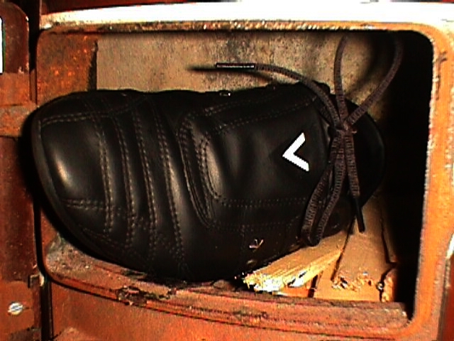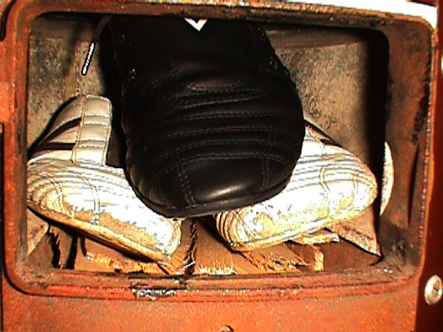 Es ist schon immer erregend, wenn dann ein einzelner Schuh, vor dem Ofen stehend, im Feuerschein des Anderen, umgeben von den fauchenden Brenngeräuschen auf seine unvermeidlich kommende "Hinrichtung" wartet; dann noch einmal dazu benutzt wird, um sich mit seiner Spitze auf dem Rost "Platz" für seine eigene Verbrennung zu Schaffen.