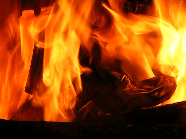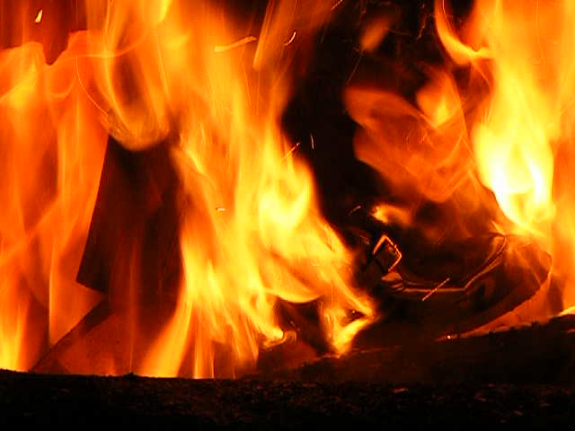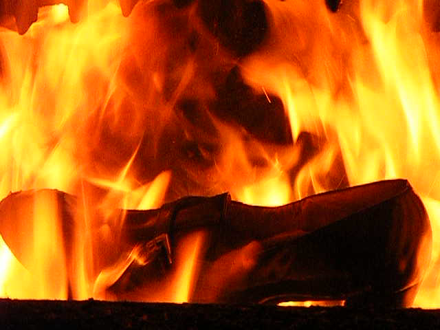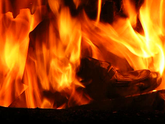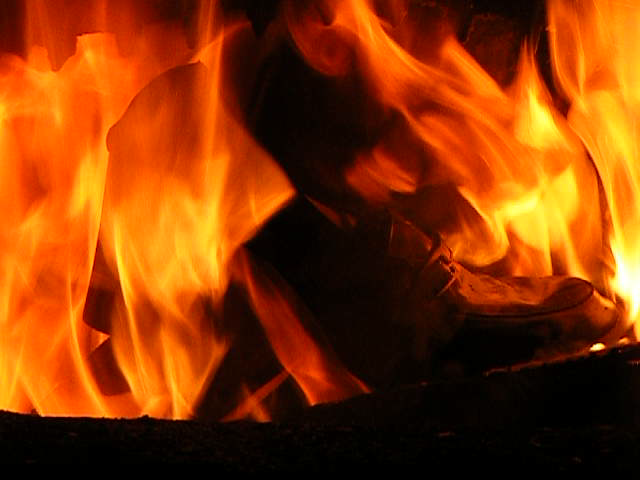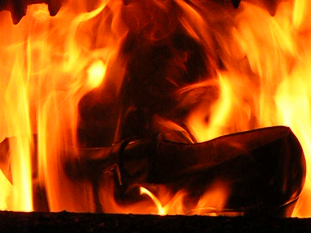 Ich habe mit Holz ein wahnsinniges Höllenfeuer im Heizungsofen entfacht, um dabei insbesondere die Schrumpf-, Streck- und Zerfallsphasen möglichst gut beobachten zu Können.