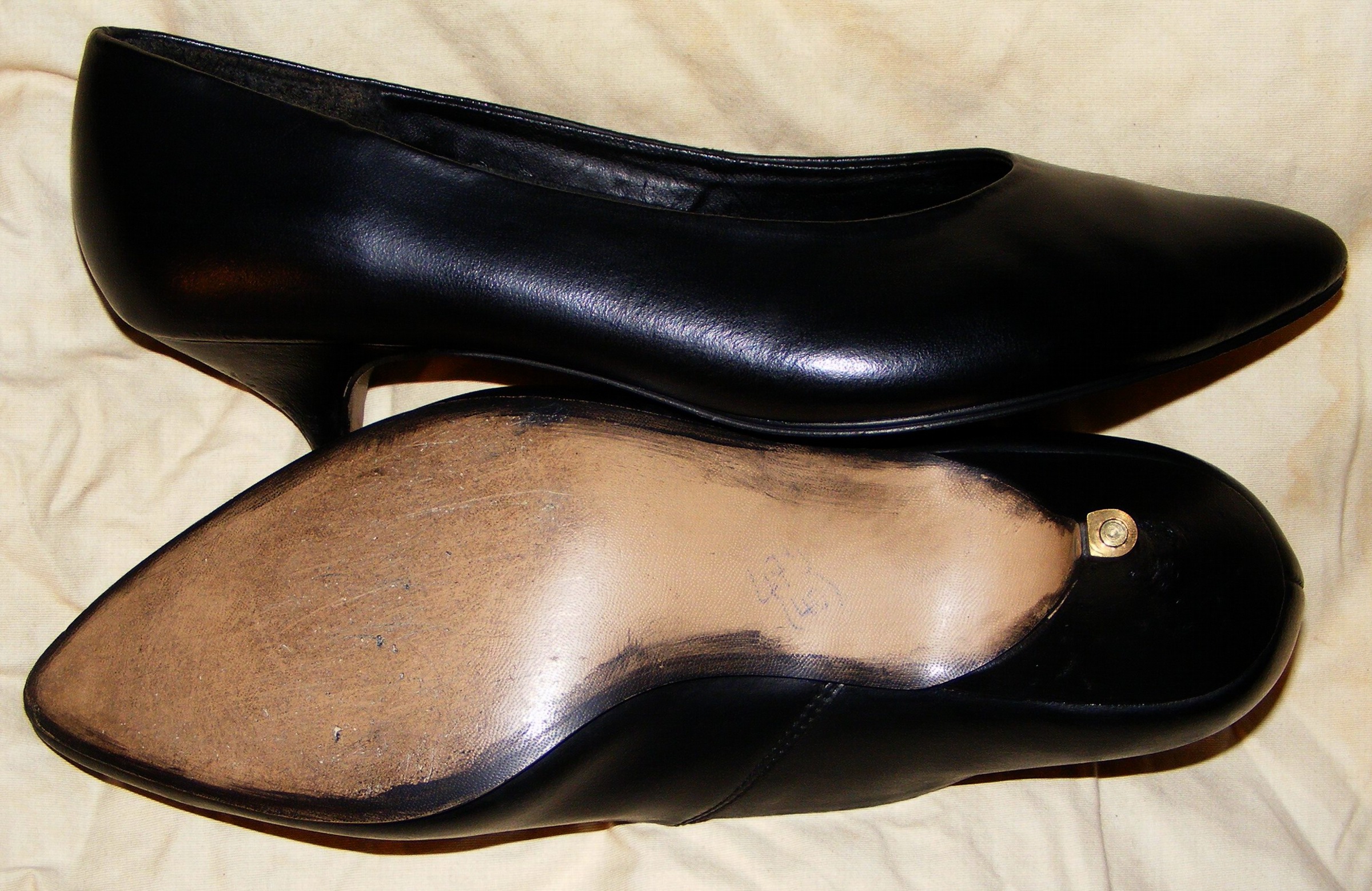 Zu Hause angekommen reinigte ich die Schuhe gründlich, entfernte die bröseligen Absatzbeläge und ersetzte sie durch blanke Metallteile. Mit der "Inventarnummer" 479 nahm ich sie im meinen Tragebestand erhaltenswerter Pumps auf! :)