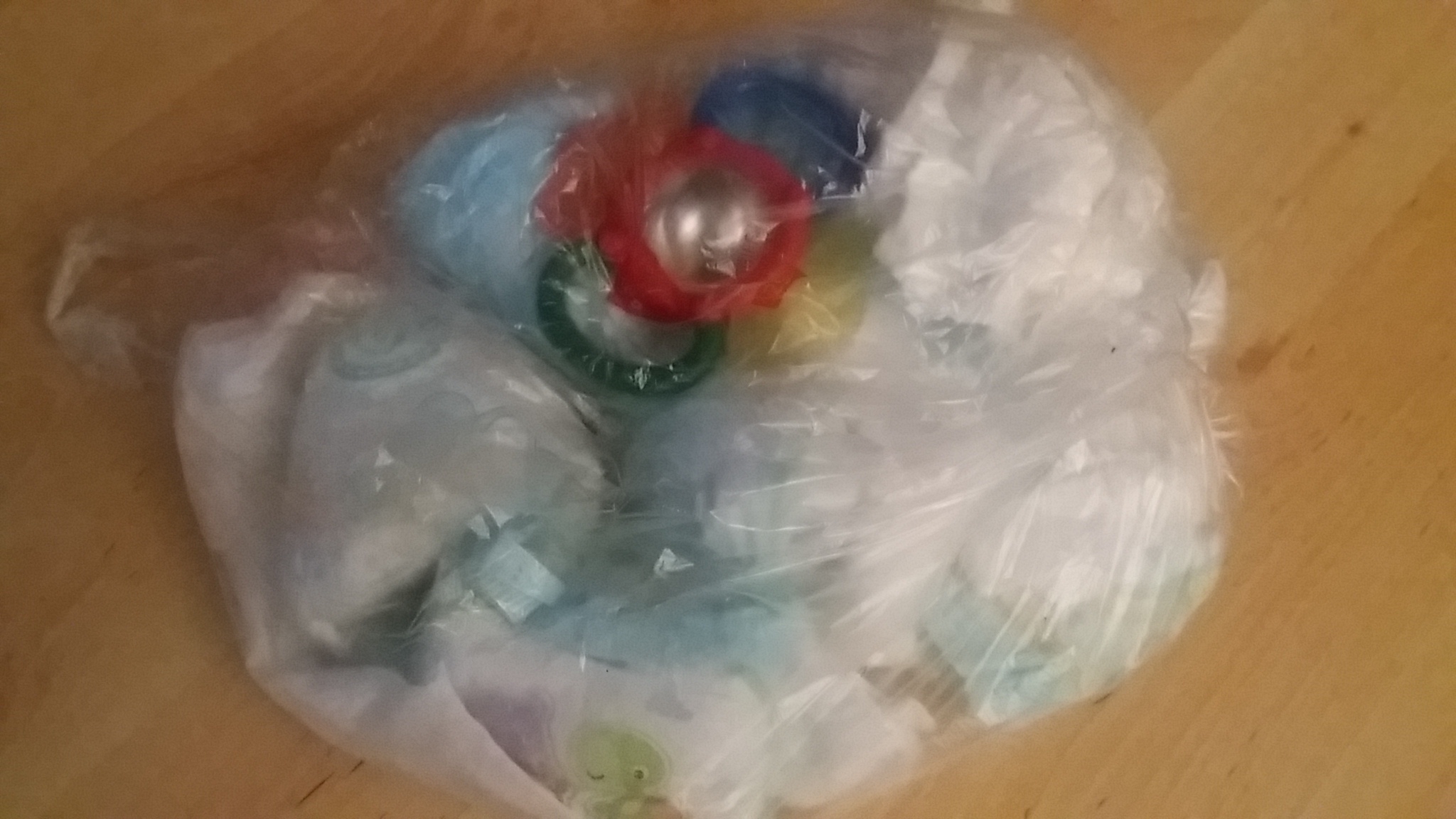Dadurch, dass die Rassel nun einige Tage mit den Windeln in dem Beutel verbracht hat, hat sie auch den unverwechselbaren Geruch angenommen