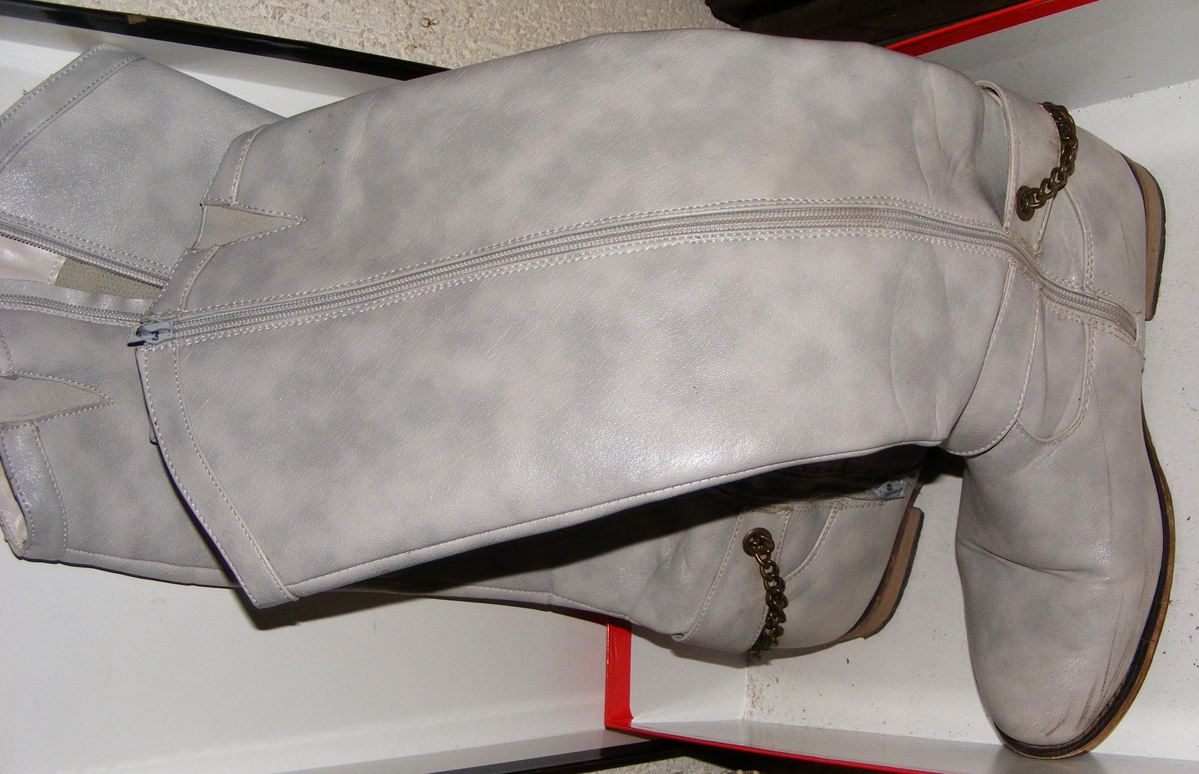 Mutter fand für sich ein Paar knielange hellbraune, wunderschöne Absatzstiefel mit weiten Schäften ohne Reißverschluß, die sie sofort anprobierte. Sie behielt sie gleich an und lief damit herum. Sie hatte die weichen Schäfte kräftig faltig zusammengeschoben und ich spürte meine erste leichte Erregung, als ich sie beobachtete, wie sie ihre vorher getragenen schwarzen Spangenpumps, die nun vor dem Tisch auf dem Fußboden lagen, mit ihren Füßen vor den Herd schob. Ich fühlte das Verlangen, die Stiefel selbst einmal zu tragen.
