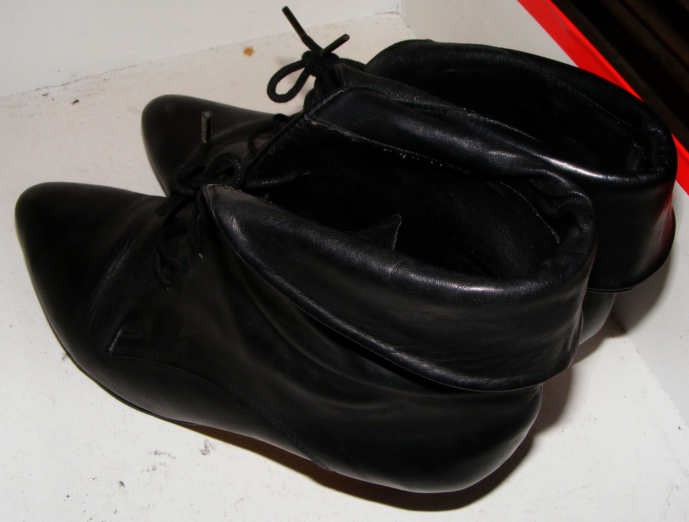 PS: Wichtiger Nachtrag: Während ich das hier schrieb und fotografierte, äußerte mein lieber Mann den Wunsch, ich möge mir bitte die größte Mühe geben, die wundervollen Schnürstiefelettchen in jedem Falle irgendwie passend zu Dehnen - die will er so was von gerne mal kombiniert mit schwarzen Strumpfhosen und einem schwarzen Lederminirock an mir Erleben! (Sabber)