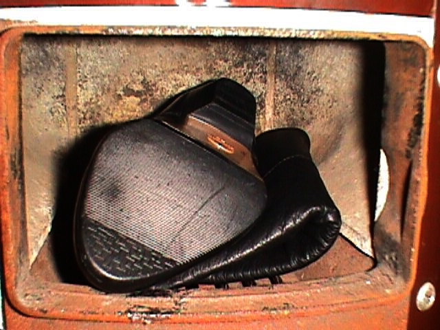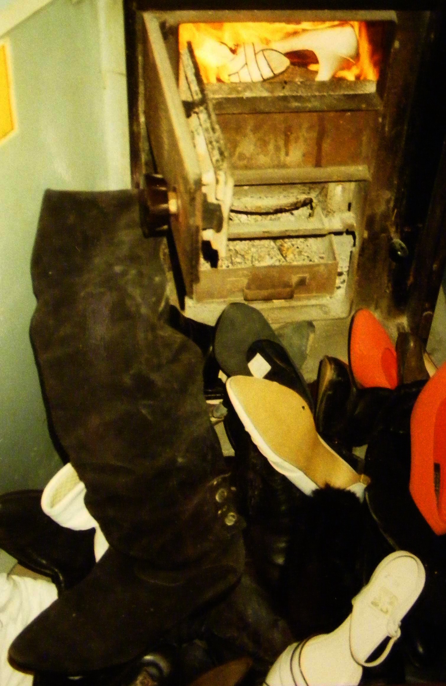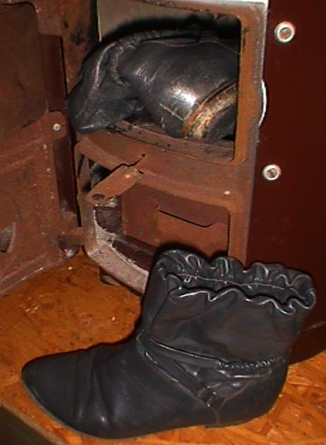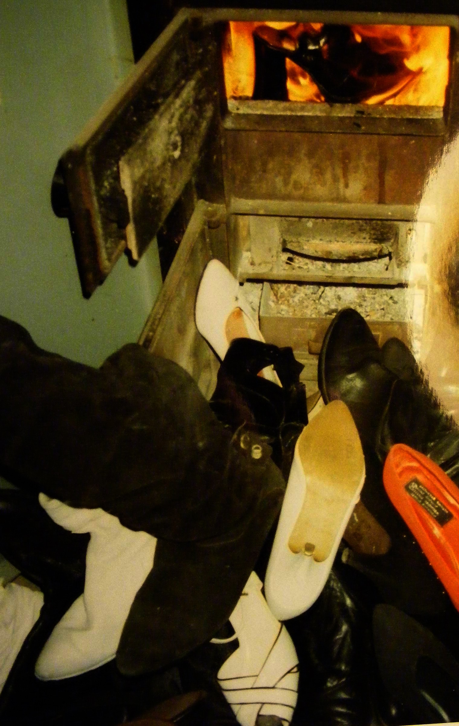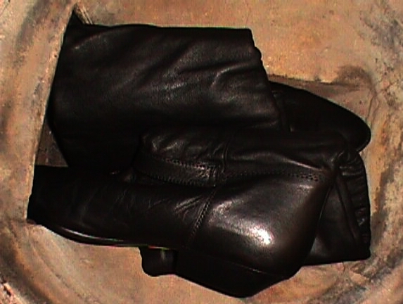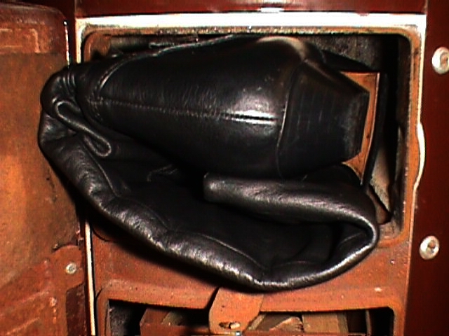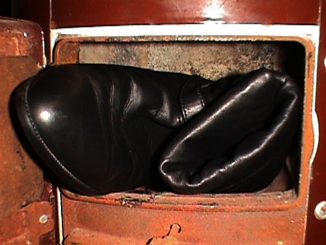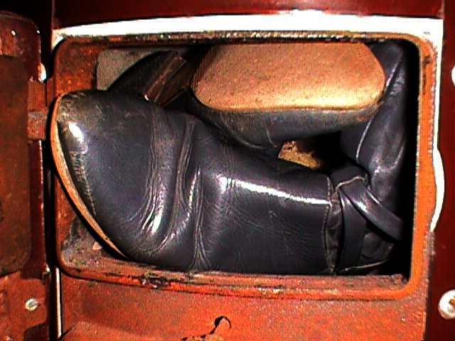 Noch immer standen die weitaus reizvolleren Lederstiefel neben meinen Füßen, nur zu gern hätte ich sie mal anprobiert; doch zwecklos - viel zu Klein und die Kollegin wird sie ja ohnehin behalten wollen. Und, plötzlich griif sie einen Stiefel, zog ihn über den linken Arm, streichelte über die Schaftfalten und fragte mich auch noch, ob ich sie haben wolle! Mich begann es zu Kribbeln, doch ich verneinte dankend. Sie nahm den Stiefel wieder von ihrem Arm, rollte ihn zusammen, öffnete die Feuertür des Herdes und stopfte ihn hinein. Es kam, was kommen mußte - der heftige Feuersturm. ich mußte mich so Zusammenreißen, doch zum Glück war der Kaffee "durch" und wir konnten Essen. Zwischendurch kam noch der andere Stiefel in den Ofen, ich war mit meinem Kuchen beschäftigt. Ich rief meinen Mann an, er solle mich doch bitte mit dem Auto abholen. Gut, das würde etwa eine halbe Stunde dauern, bis er hier ist. Wir genossen den Kaffee und einige Zigarettchen, dann wurde es still im Herd. meine Kollegin stand auf und legte einige Holzscheite nach. Sie öffnete den Kohlenkasten des Herdes und holte mit energischem Schaftgriff einen schwarzen, neuwertigen Lederstiefel meines "Beuteschemas" heraus.