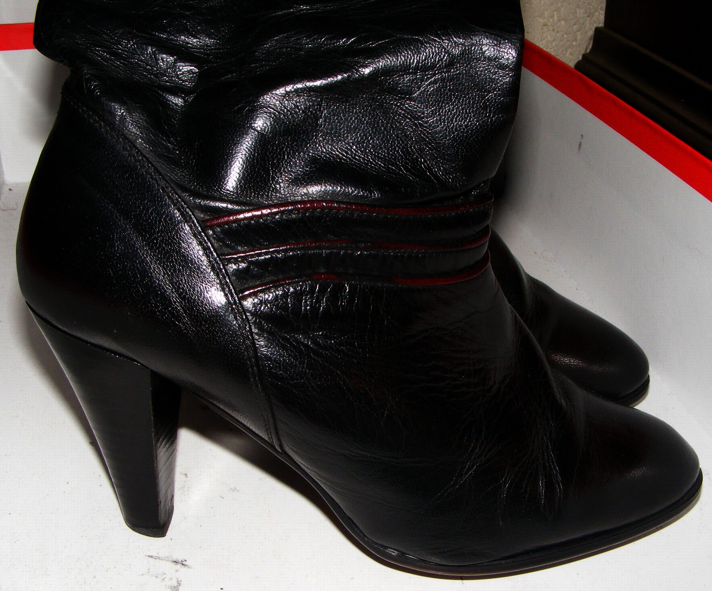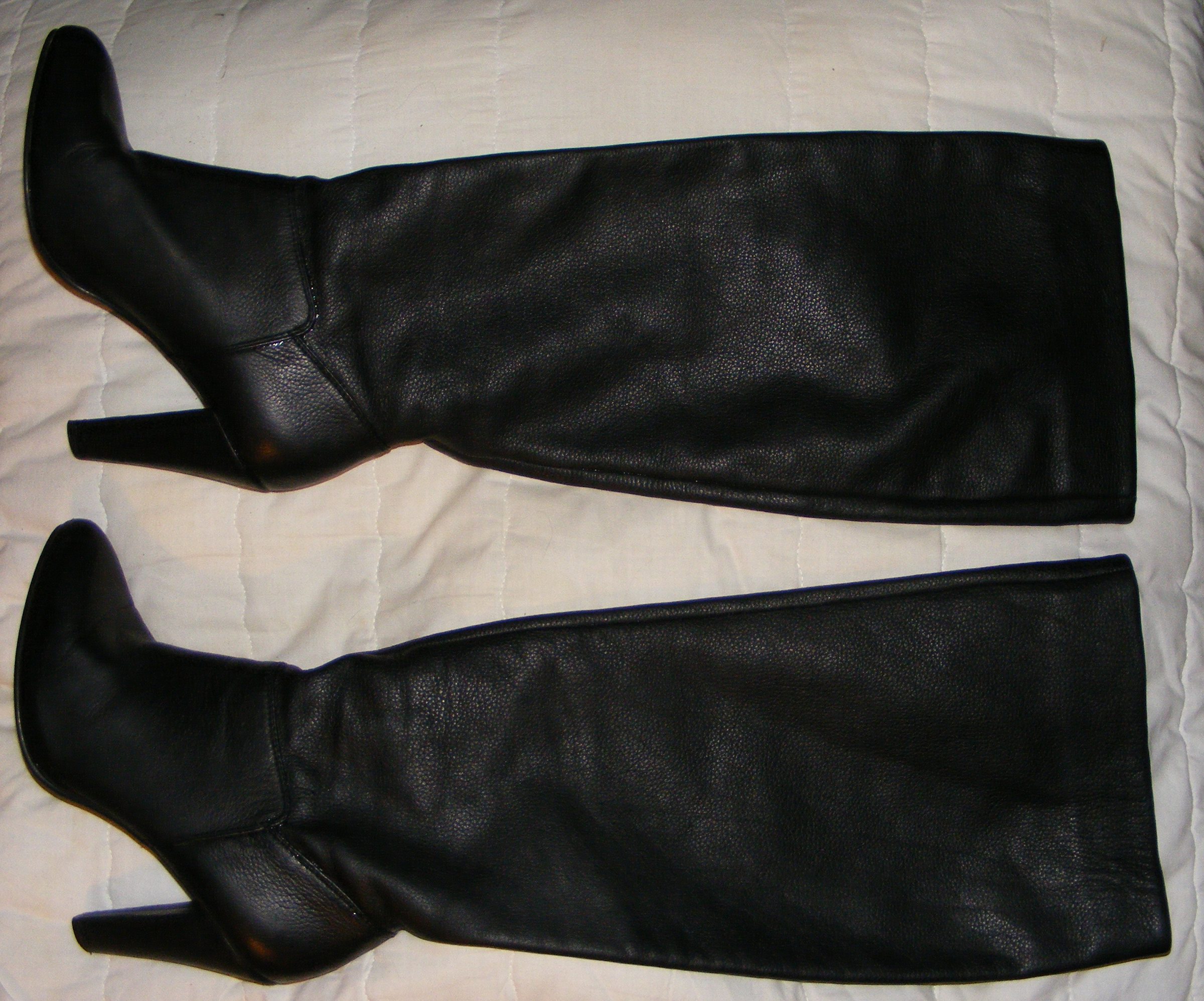 Sie trug ein Paar braune Leder-Reitstiefel (siehe Vergleichsbilder Unten), nach ihrer Aussage aber schon einige Jahre alt und "nicht mehr so schön". Eigentlich hätte schon allein diese Aussage mich kräftig in Wallung gebracht - doch diesmal blieb es verständlicherweise aus - die Kollegin hat "nur" Größe 38.