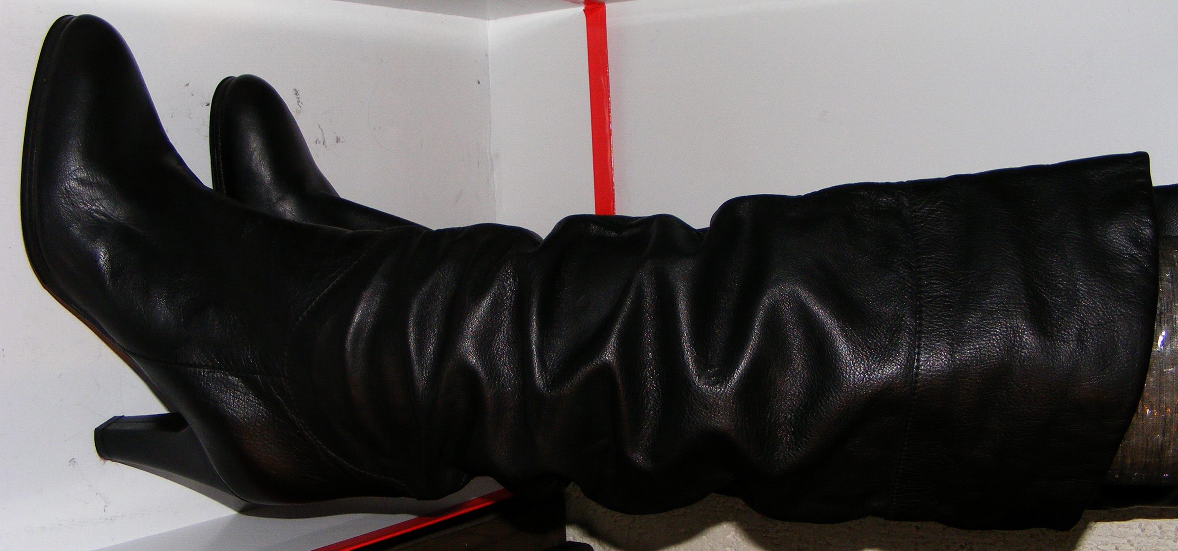Ich stellte die Stiefel sorgsam neben meinen Stuhl und beobachtete nun die Anprobe und das "Schaulaufen" meiner Kollegin in ihren neuen Teilen, die perfekt zu Passen schienen. Na ja, nicht übel die Form, dachte ich, doch Wildleder und innen ein durchgehender Reißverschluß ließen bei mir keine übermäßige Begeisterung aufkommen.