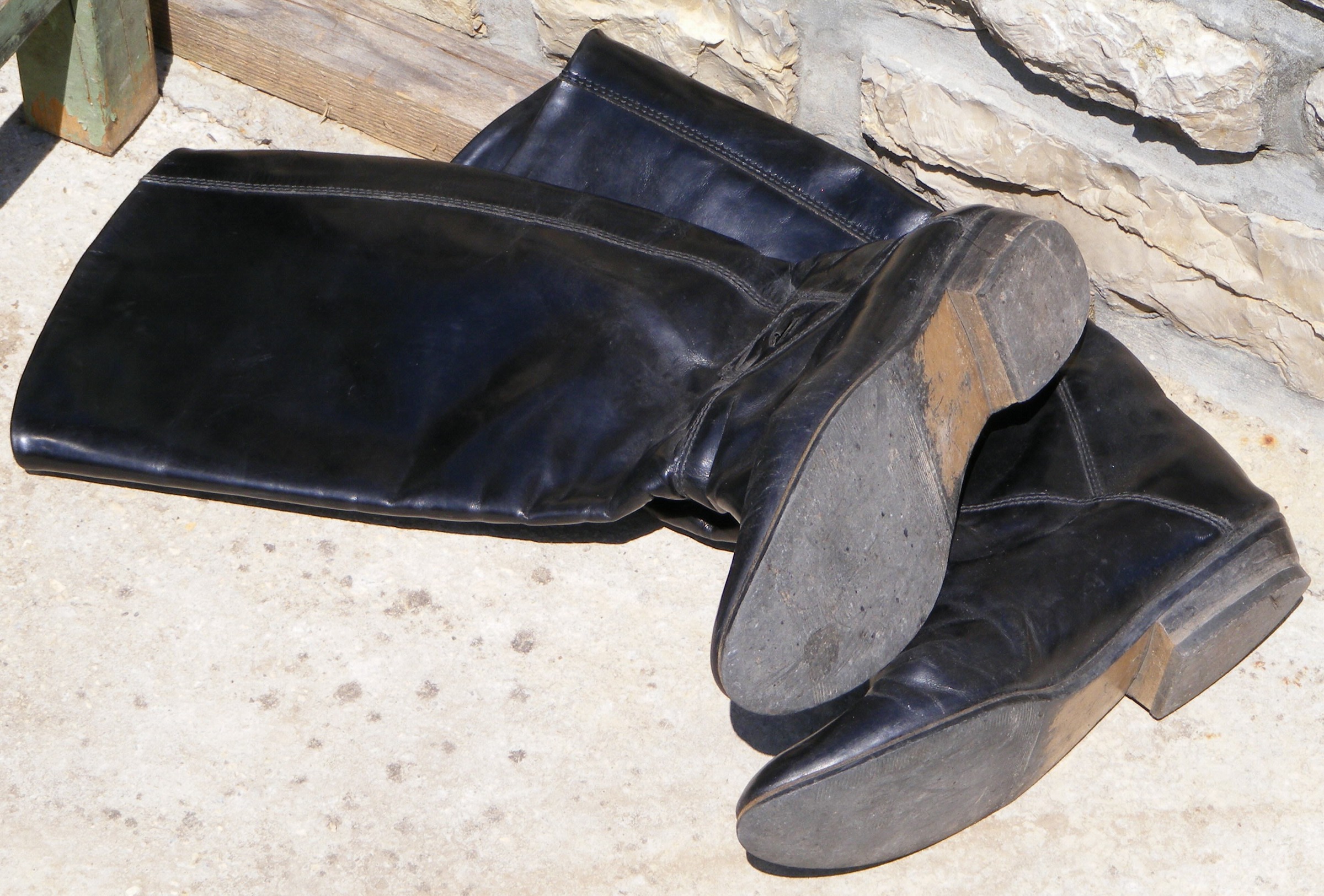 Ja, auch in Ungarn ist es völlig selbstverständlich, alte Schuhe zu Verbrennen. Gern auch in Gesellschaft, fliegen alte Sneakers in die Lagerfeuer. Auch wir wollten abends einen kleinen privaten Mädelsabend mit Lagerfeuerchen machen, Wir durchkämmten einige Räume auf der Suche nach Brennmaterial. Gefunden haben wir einen kleinen Schrank, einige Stühle, alte Trachtenkleider und diese Stiefel, die bereits auf dem Brennholzstapel vor der bedrohlichen Kulisse eines Ofens lagen. Die Stiefel der Gastgeberin kamen also mit auf den Gartenfeuerplatz. Später gesellten sich noch die Reitstiefel einer Nachbarin dazu.