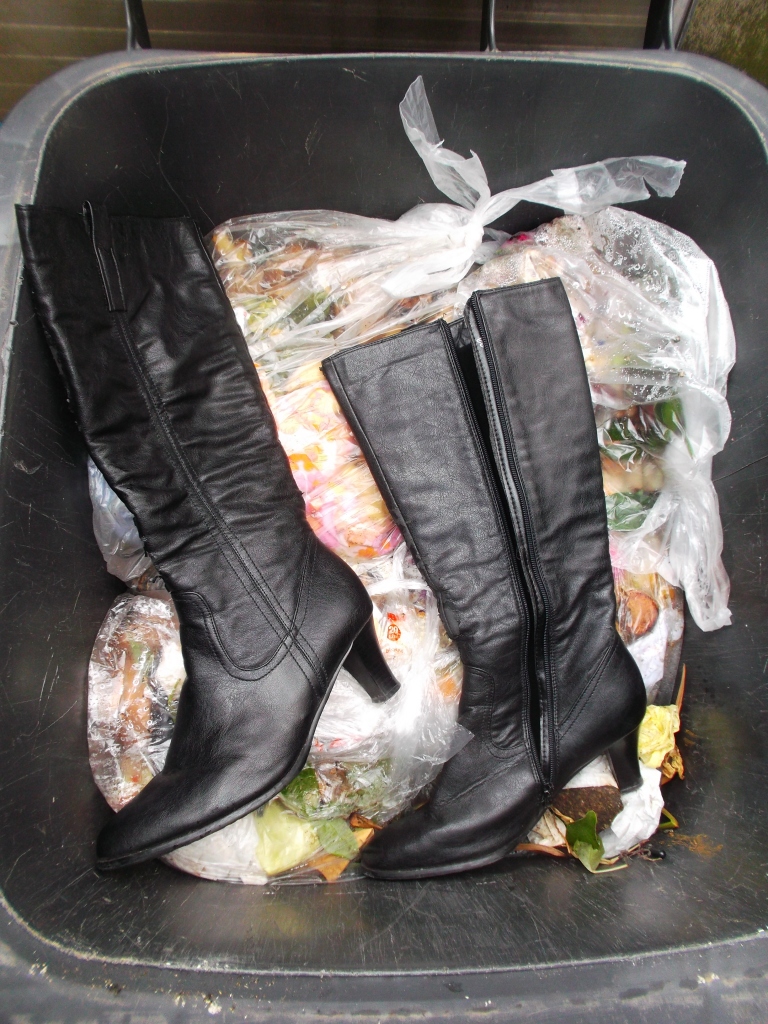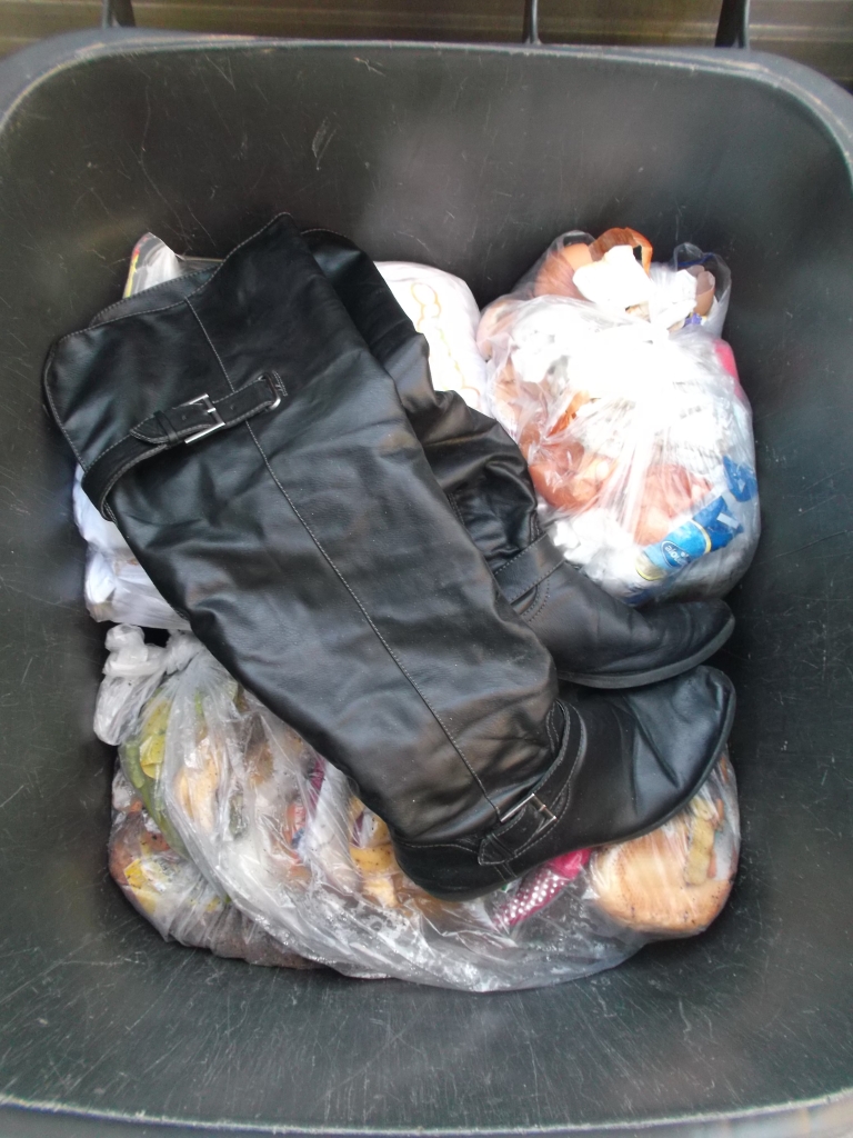 tamaras schwarze stiefel sind total geil, die machen sich echt gut in der tonne, nur schade um lauras girly ballerinas, aber verluste gibts ja immer