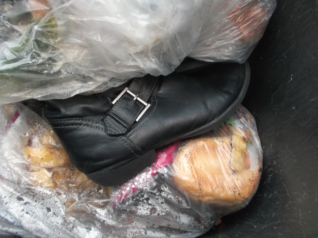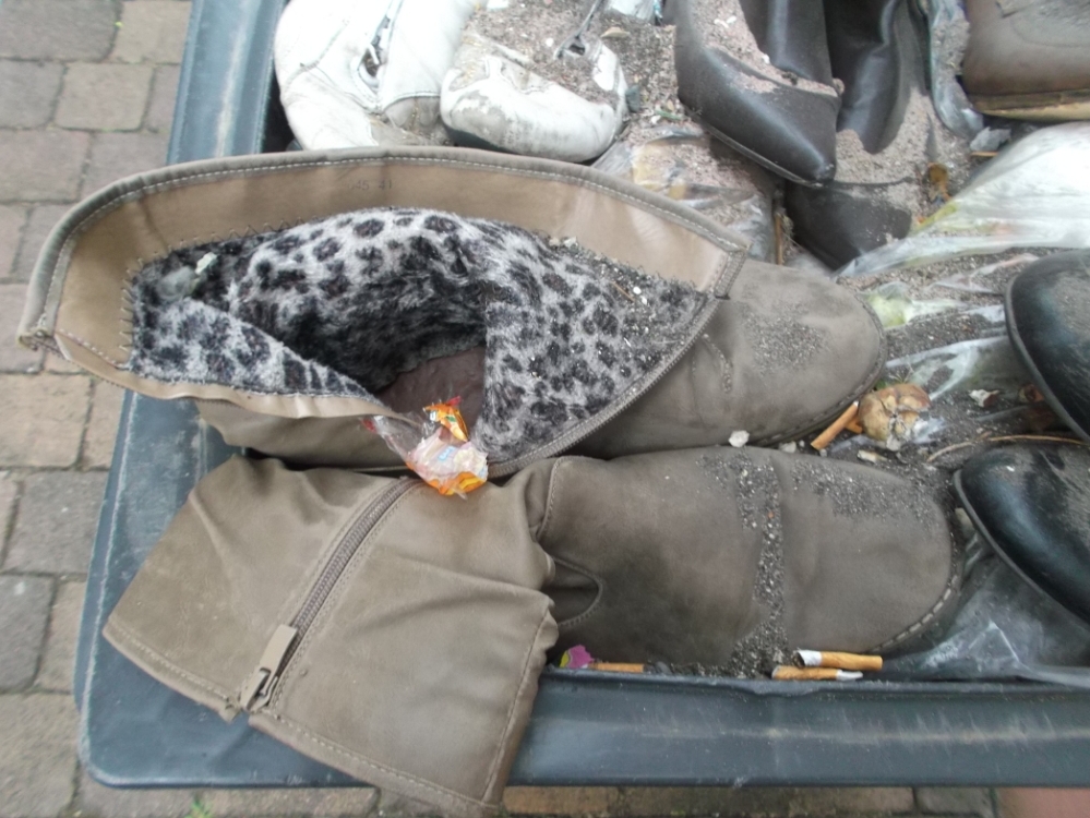 - So wären die Stiefel beinahe ins Müllauto gekommen.