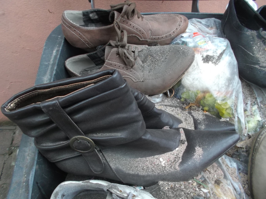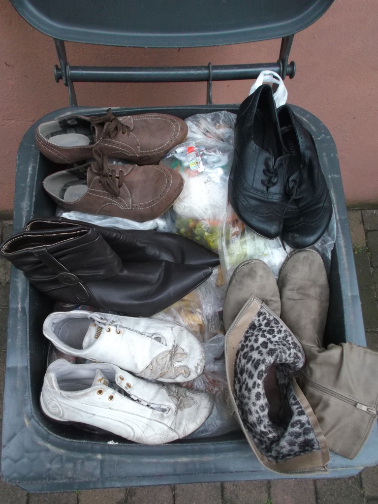mein Adrenalinspiegel stieg immer mehr, weil ich nun recht fix den Haufen Müllschuhe von Jessica fotografieren und diskret retten musste und jederzeit die Müllmänner vor unserem Haus stehen konnten.