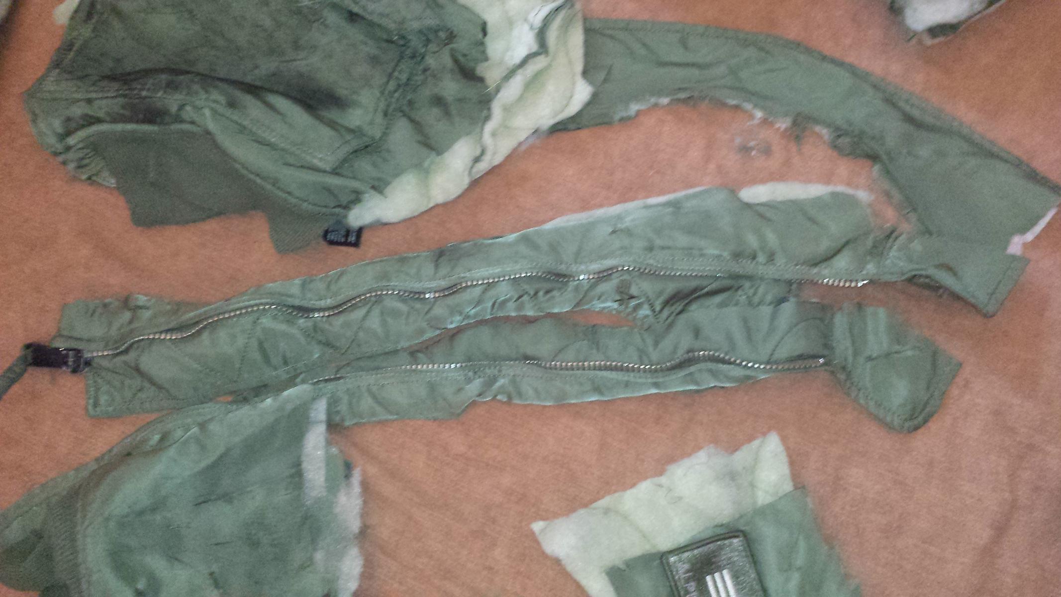 Hier werden einige Schwimmweste + Jacke vernichtet,
