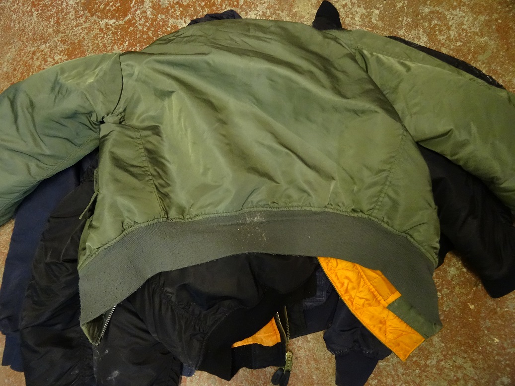 Jackengeil hat geschrieben:wieder mal was mit Bomberjacken: Die Lumpen auf dem Haufen haben alle zusammen vielleicht 25 oder 30€ gekostet. Alles Flohmarktsmüll. Da gibts oft welche die schon ziemlich fertig sind für 3 oder 5 €. Die teuerste war die grüne für 10€. Sieht aus wie ne Alpha ist aber keine, auch irgendein billiger Lappen. Zum anziehen sind die natürlich nix mehr. Welche ist die geilste und welche ist wirklich Abfall?