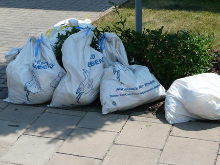 Der Sack wird dann an den Strassenrand gestellt mit vielen anderen Säcken, 17, 35, 60 oder 110l. Auch Sperrmüll und Weihnachtsbäume werden am gleichen Tag vom Müllauto abgeholt und dann ohne Diskussion wird alles verbrannt.