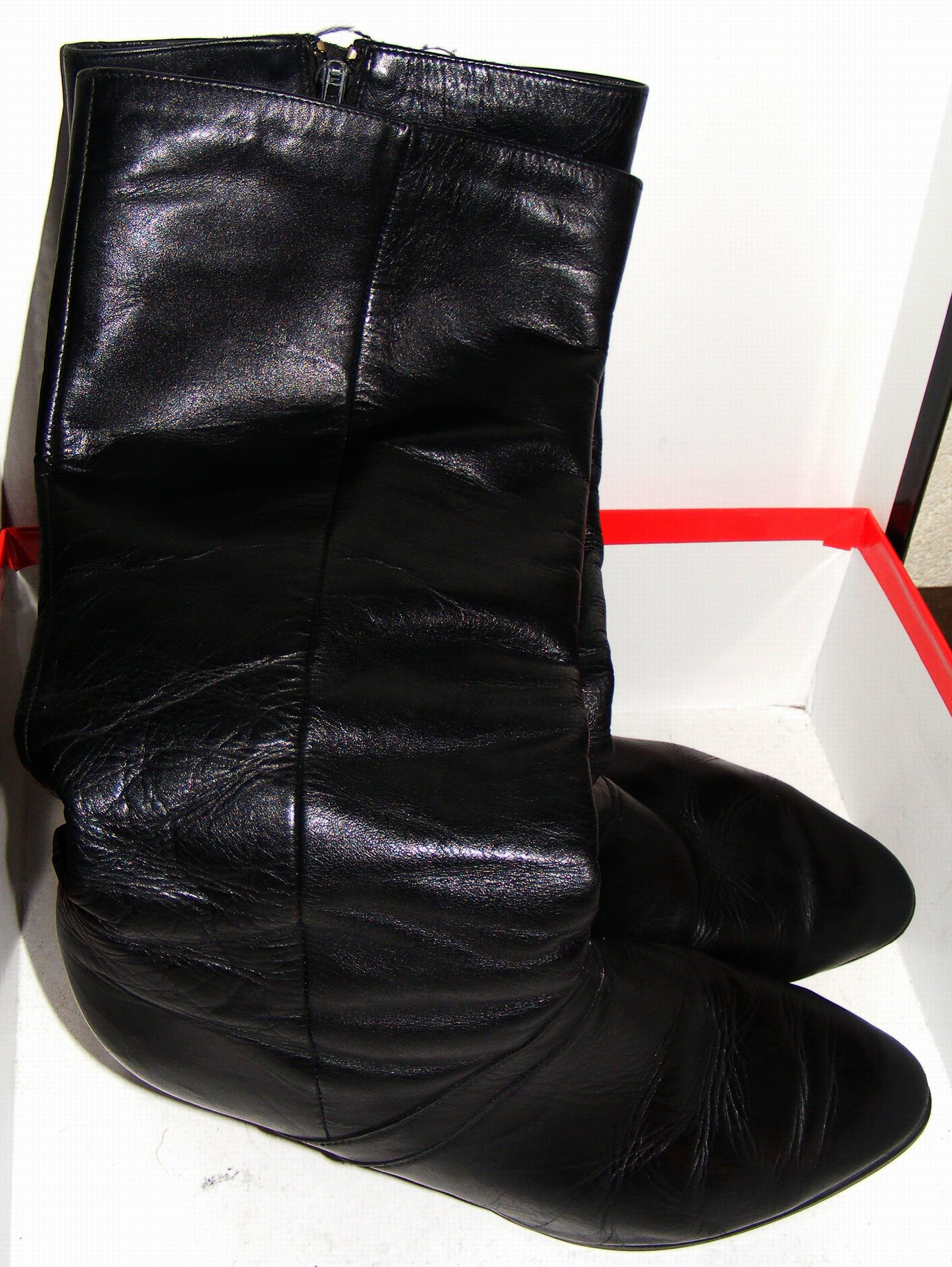 Endlich kam auch der Moment, als ihre hübschen breiten Füße unser Leder wieder strafften und ihre Hände liebevoll über die Falten der Schäfte glitten. Sie trug uns entweder zum Minirock über die Knie gezogen oder mit kräftig gefalteten Schäften halblang über den Jeans. Für uns begann endlich das glückliche Leben. Wir fuhren mit dem Auto und der Bahn, begleiteten unser Mädchen ins Kino und zu Konzerten, tanzten und auch auf einem Schiff waren wir wieder, anläßlich einer Flußdampferfahrt.