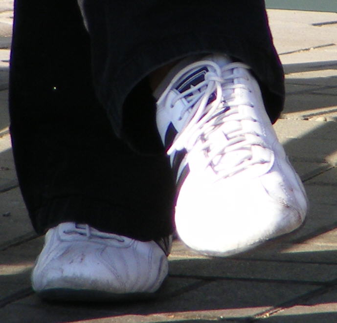 Hier verbrachten wir den ganzen Sommer, dann kam eine Frau mit einem Kind in den Laden, sah sich prüfend all die schönen Sachen an, ging auf uns zu, nahm uns aus dem Regal, zog ihre alten, kaputten Schnürschuhe aus und uns an. Die alten Schuhe warf die Verkäuferin in einen Kohleneimer neben dem Ofen, wir blieben an den Füßen der Frau und verließen so den Laden. Nachdem uns unterwegs das Kind mehrmals kräftig auf die Spitzen getreten hatte, erreichten wir die Wohnung der Frau. Sie zog uns aus, wir hatten Gelegenheit uns gegenseitig anzusehen. Innerhalb der kurzen Zeit waren wir ziemlich schmutzig geworden. Während des Winters mußten wir oft mit der Frau durch Schnee und Matsch zum Einkaufen gehen, wurden auch noch reichlich von dem Kind getreten. Wir wurden zwar immer wieder getrocknet, aber leider bekamen wir nicht unseren schwarzen Glanz zurück. Eine innige Beziehung zu unserer Besitzerin, die uns immer unter langen Hosen versteckte, hat sich nicht entwickelt, es war eher eine reine Zweckgemeinschaft. Auch die Beläge unserer Absätze waren total abgelaufen.