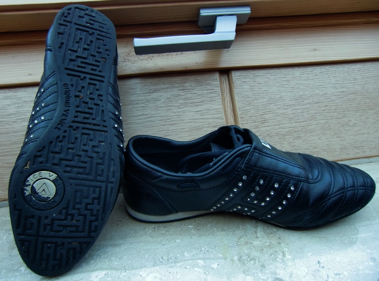 Das Mädchen mußte kräftig arbeiten, bis wir endlich unseren schwarzen Glanz zurückerhalten hatten. Am nächsten Tag brachte sie uns zu einem Schuhmacher, der neue Messing-Absatzbeläge montierte und eine neue hauchdünne Ledersohle aufklebte.