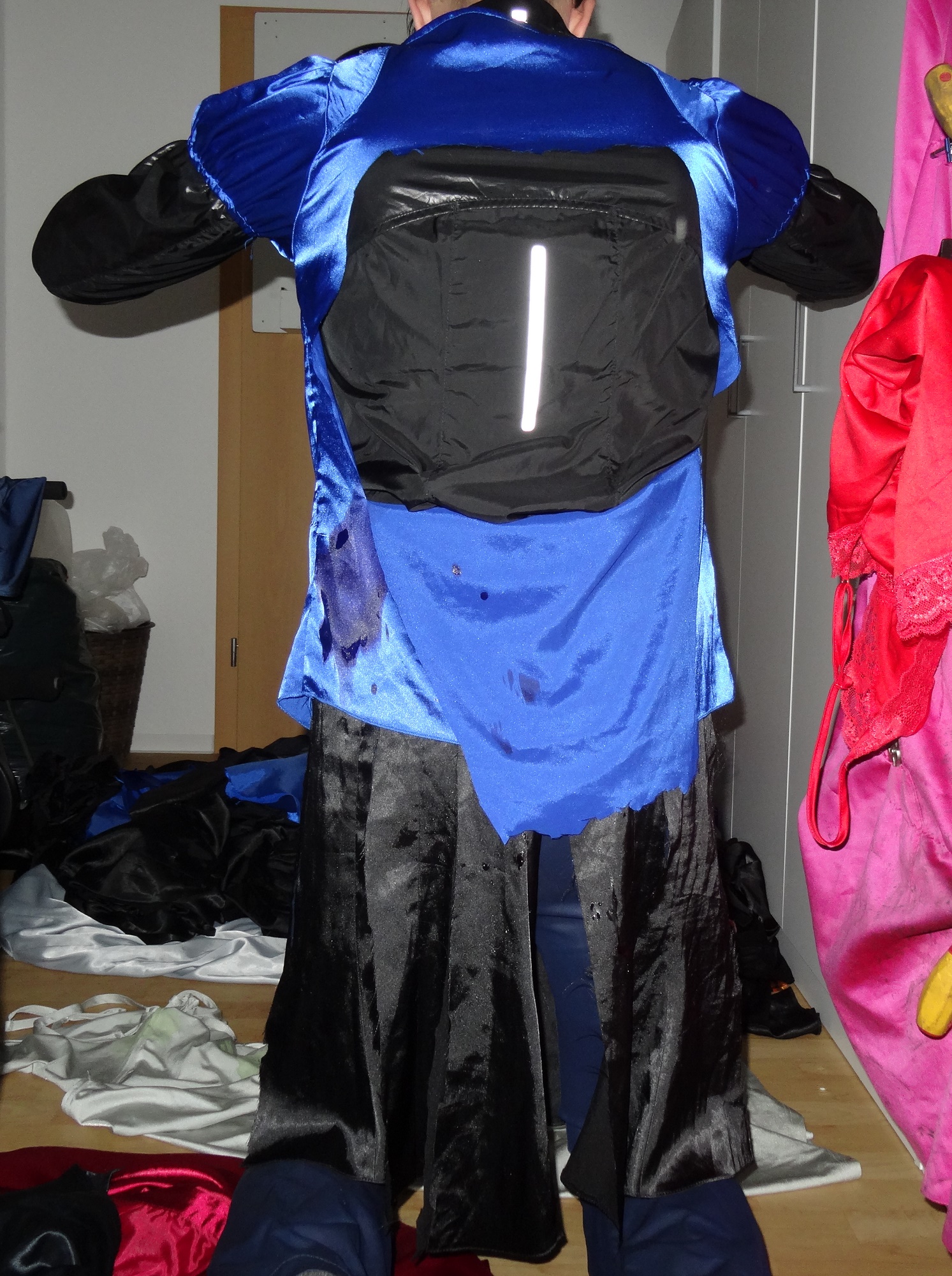 Dazu 'ne Schwarze Stoff oder Satinhose.