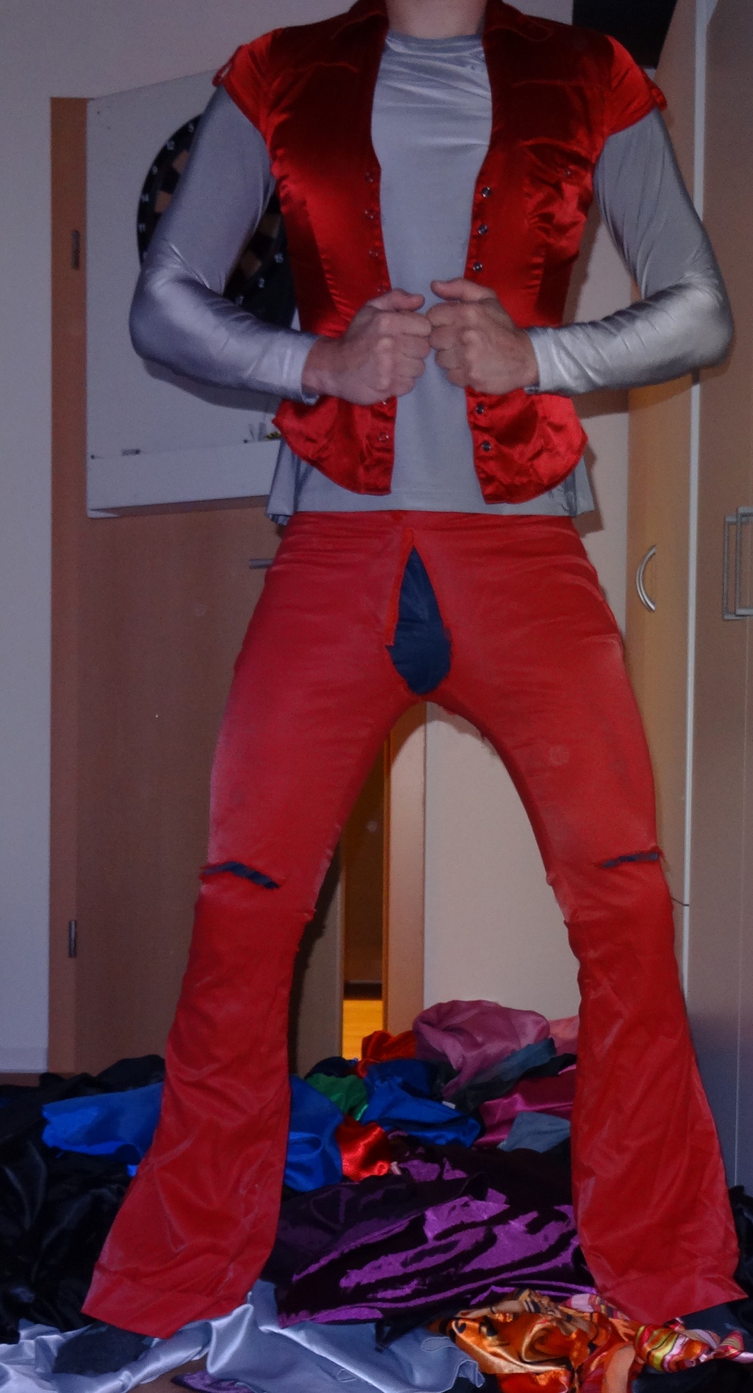 hier die rote Bluse und die Hose bzw der Rest davon. Die Hose hat meine Freundin beim Sex zerrissen, sind auch noch ne Menge Flecken dran (Muschisaft).