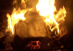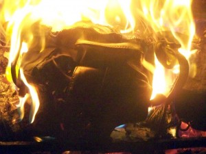 :shock: das brennt ja mal heftig! keine Chance für das arme Ding? :( Brennt der Inhalt so gut?