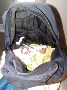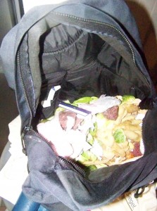 Diesen Rucksack habe ich als Auftragsarbeit erst mit Küchenabfällen befüllt, dann einige Wochen vor sich hinrotten lassen und ihm dann ein Ende im Kamin bereitet :D