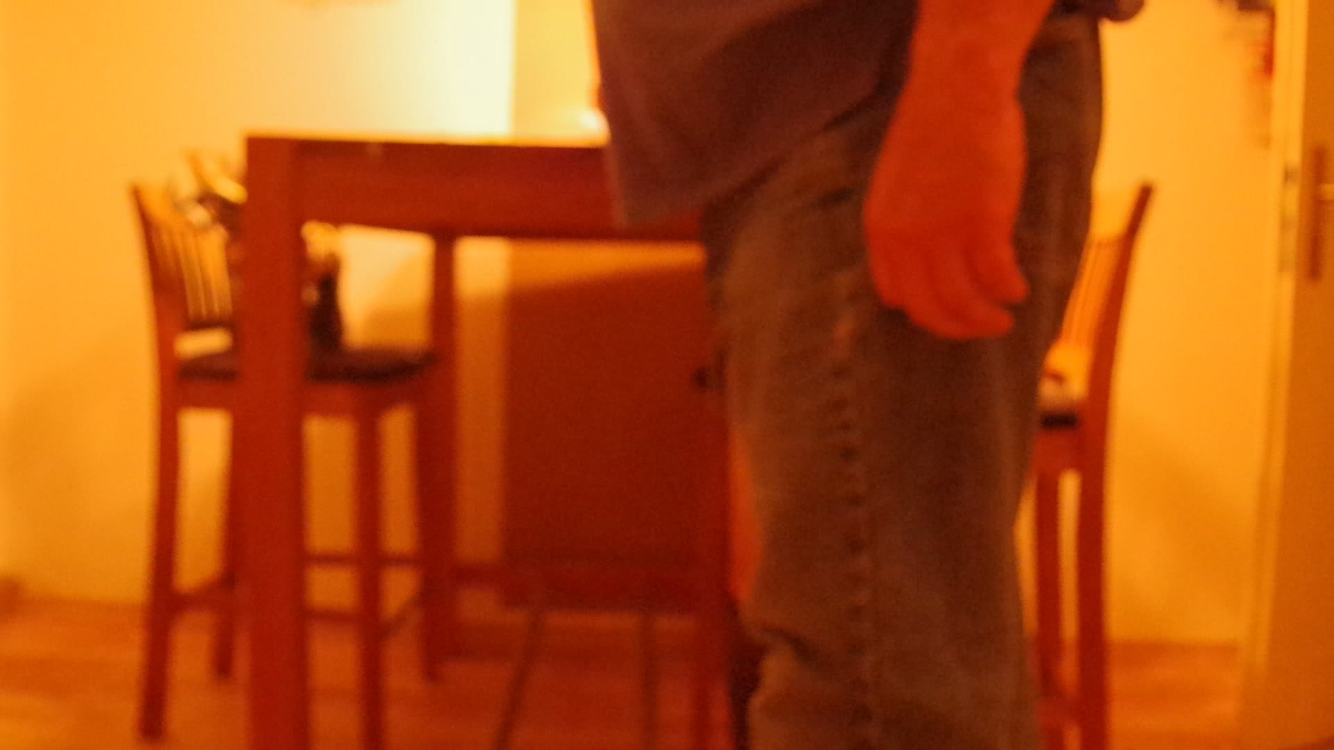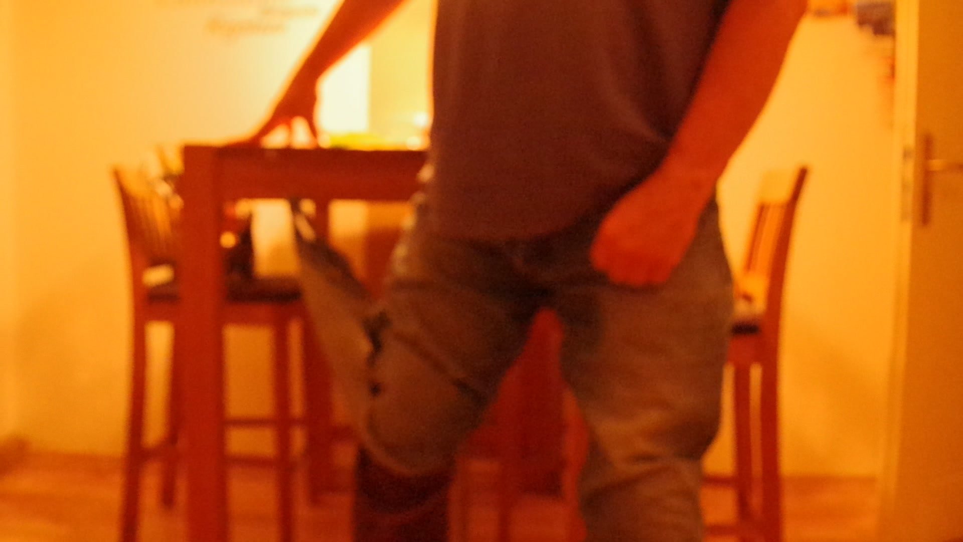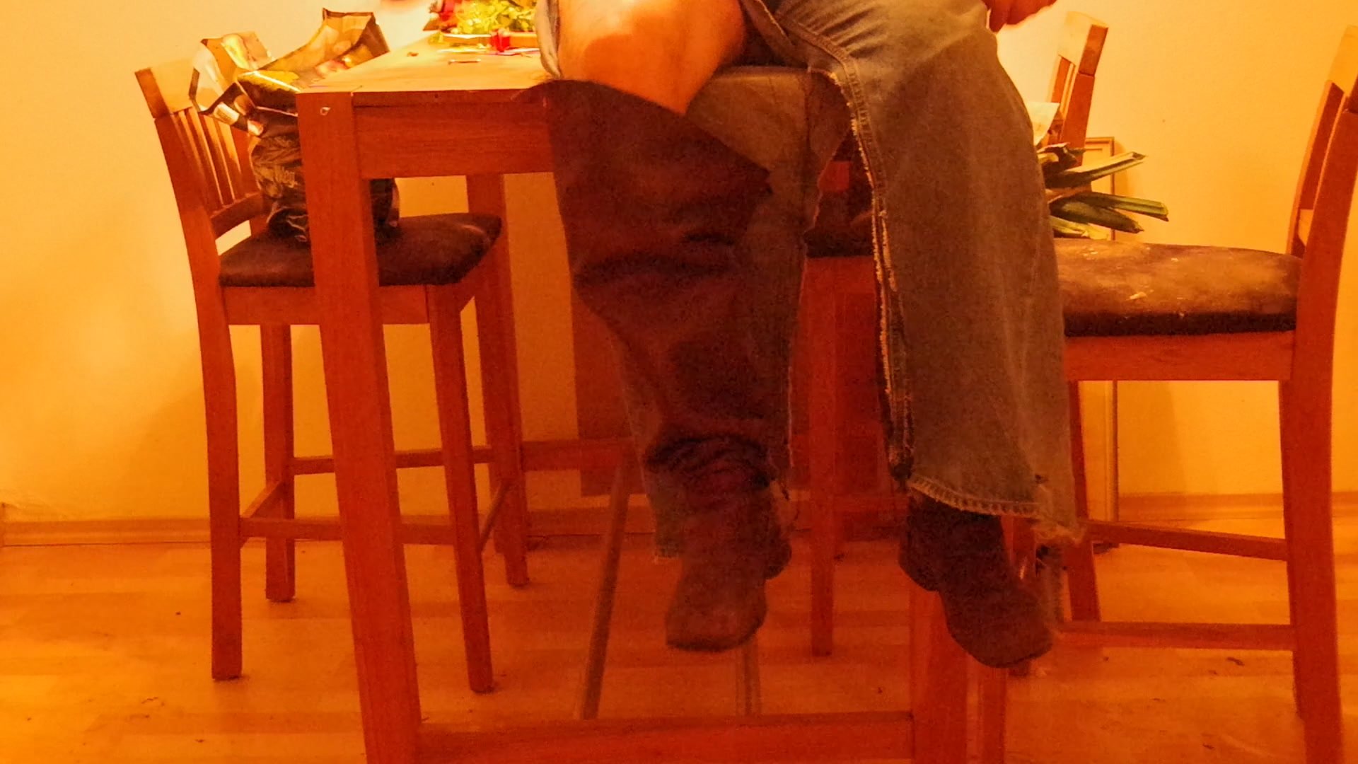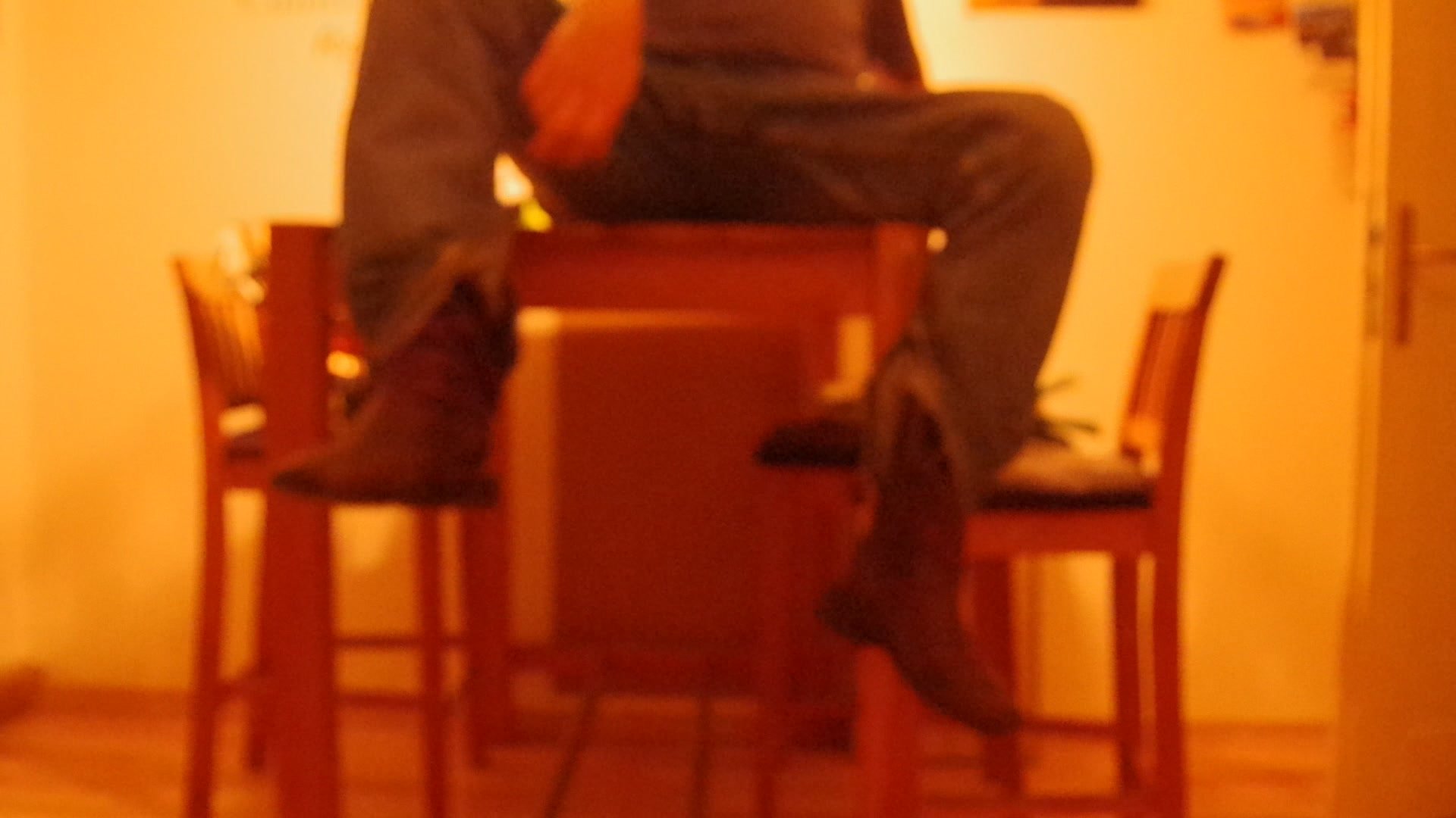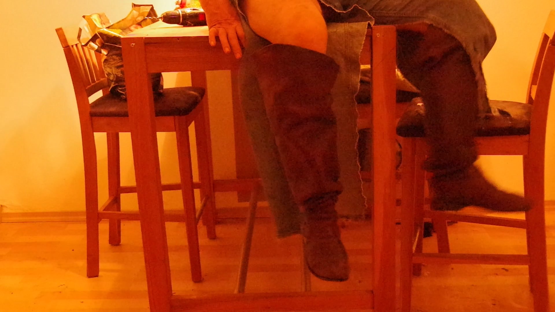 Ich werde im Fersenbereich die Jeans und! die Stiefel am Tisch festnageln und mich dann befreien!