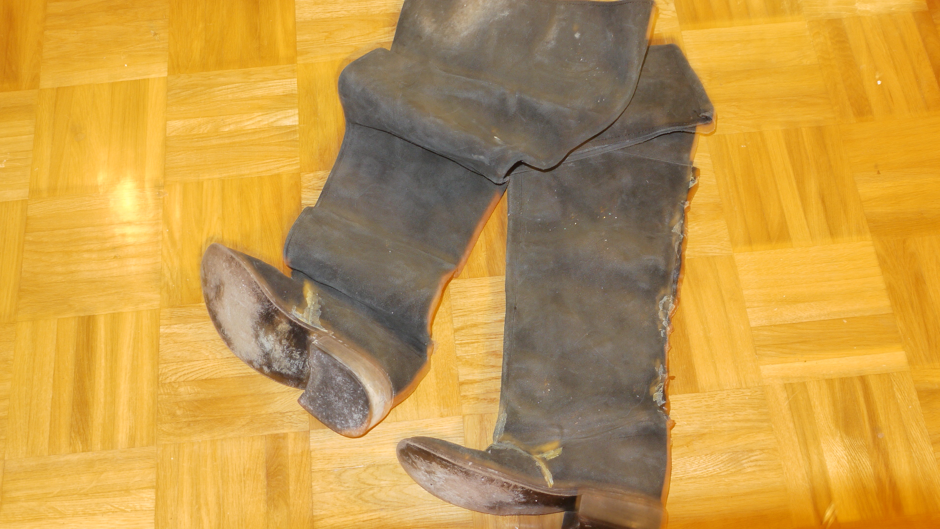 Mit jeder Bewegung werden die Stiefel immer weiter aufgerissen. dann machts einige mal ratsch und die Stiefel sind fertig.