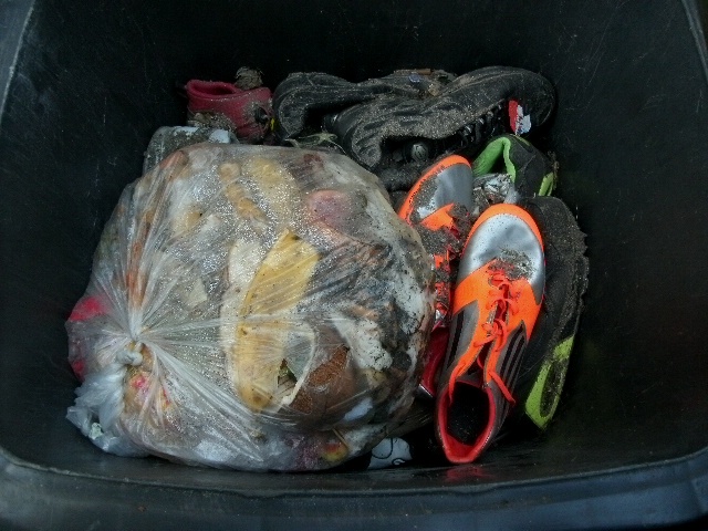 Besonders der Müll von vor zwei Wochen war schon ziemlich verrottet und hatte eine braune Farbe angenommen; bis auf die pinken Stiefel.