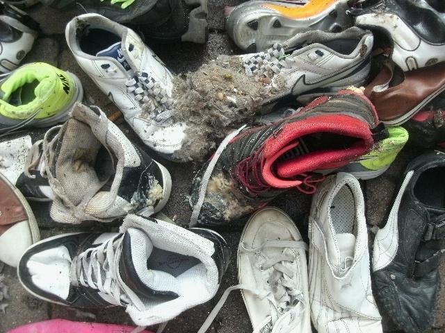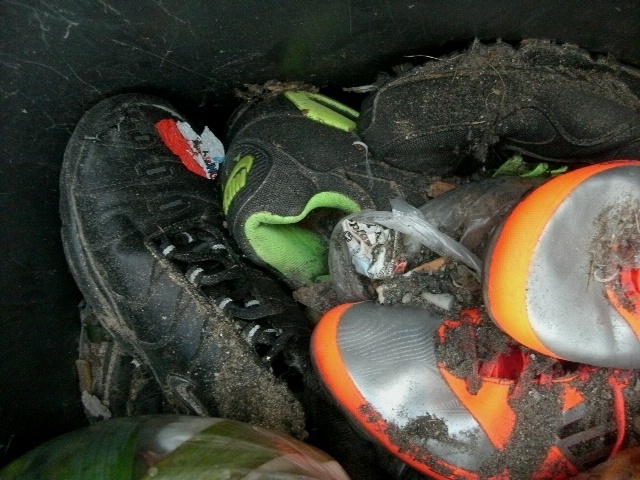 Die Schuhe wurden nochmal durchgesehen und kamen alle in die Mülltonne - wohin sie auch gehörten.