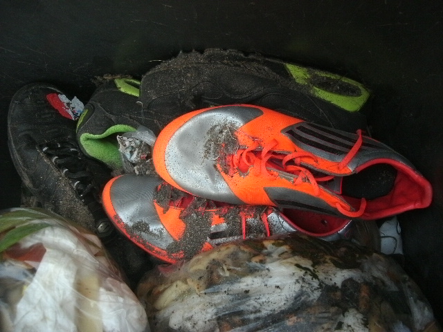 Mit Küchenabfällen bald abgedeckt, konnten die Müllschuhe nun vor sich hinrotten.