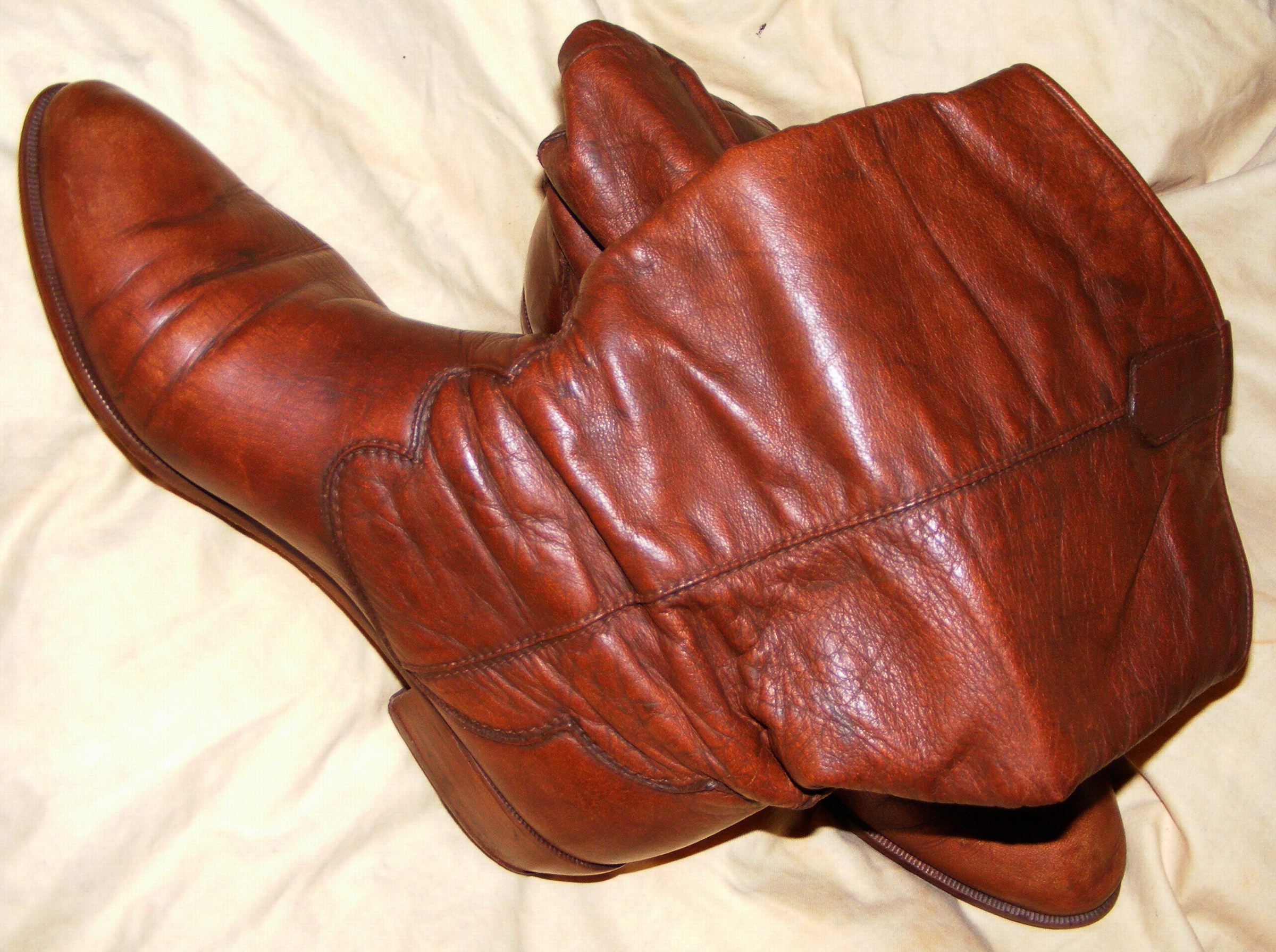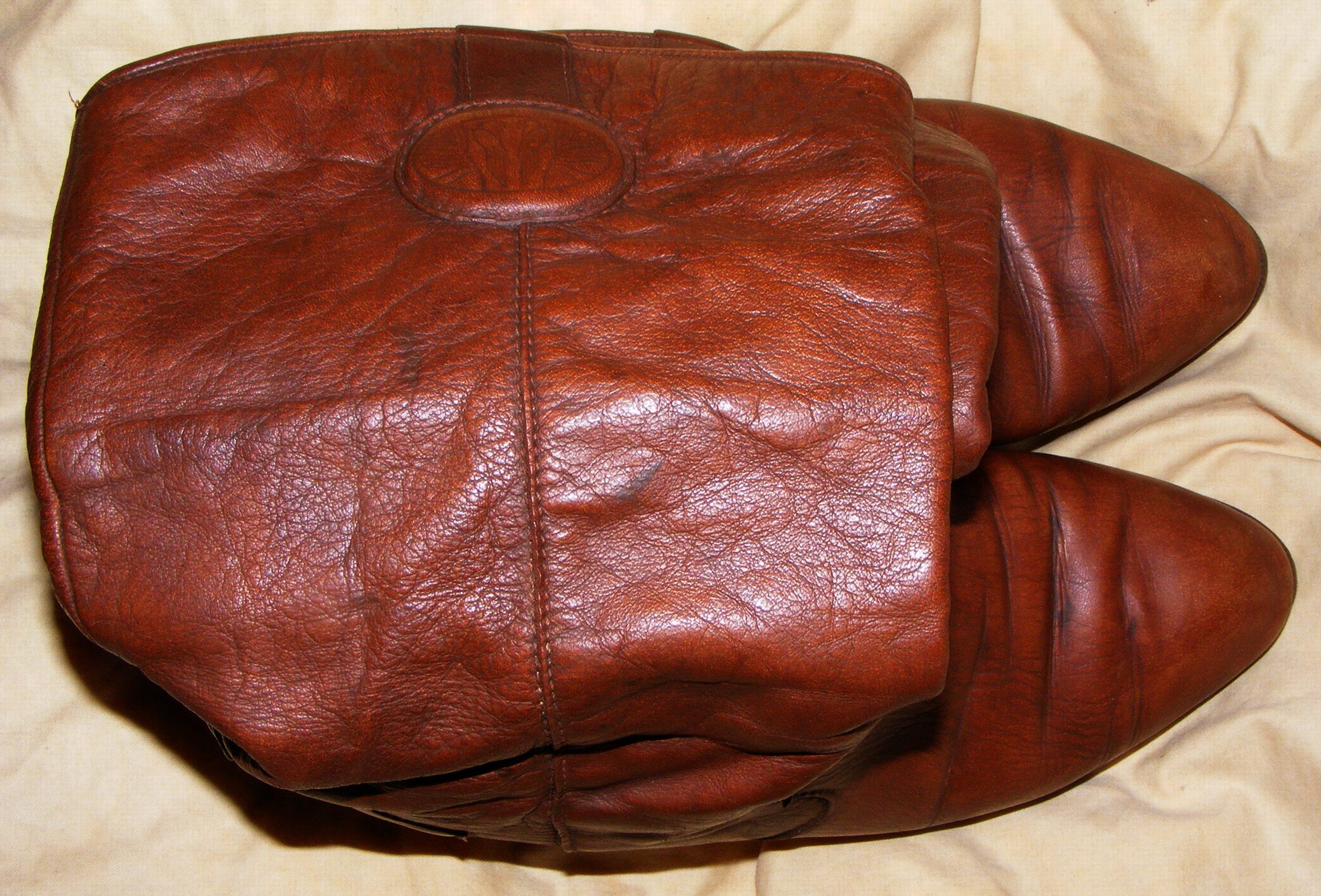Selbstverständlich ist die Lederhose geil - doch ich glaube, die Farbschattierungen des faltigen Leders dieser wundervollen braunen Stiefel zeigen noch deutlicher und erregender die Vorzüge dieses herrlichen Materials.