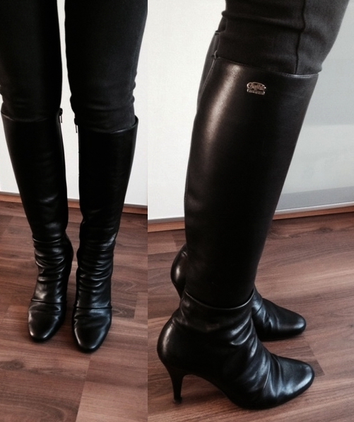 , dann habe ich die Stiefel, kombiniert mit einer schwarzen Slim, meinem Mann "gezeigt" - er hat sie höchstpersönlich Gereinigt und Aufgearbeitet - und mir (bzw. uns