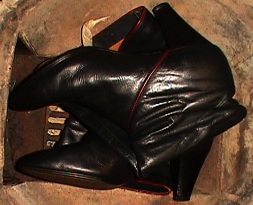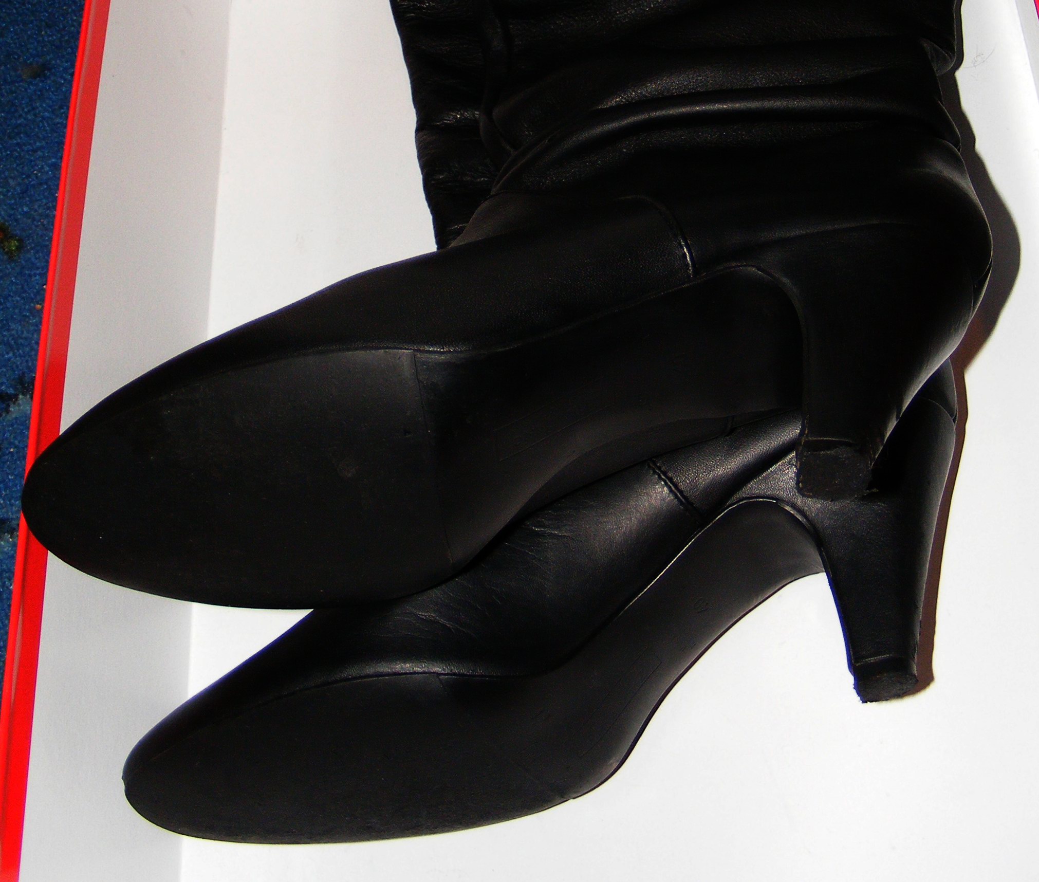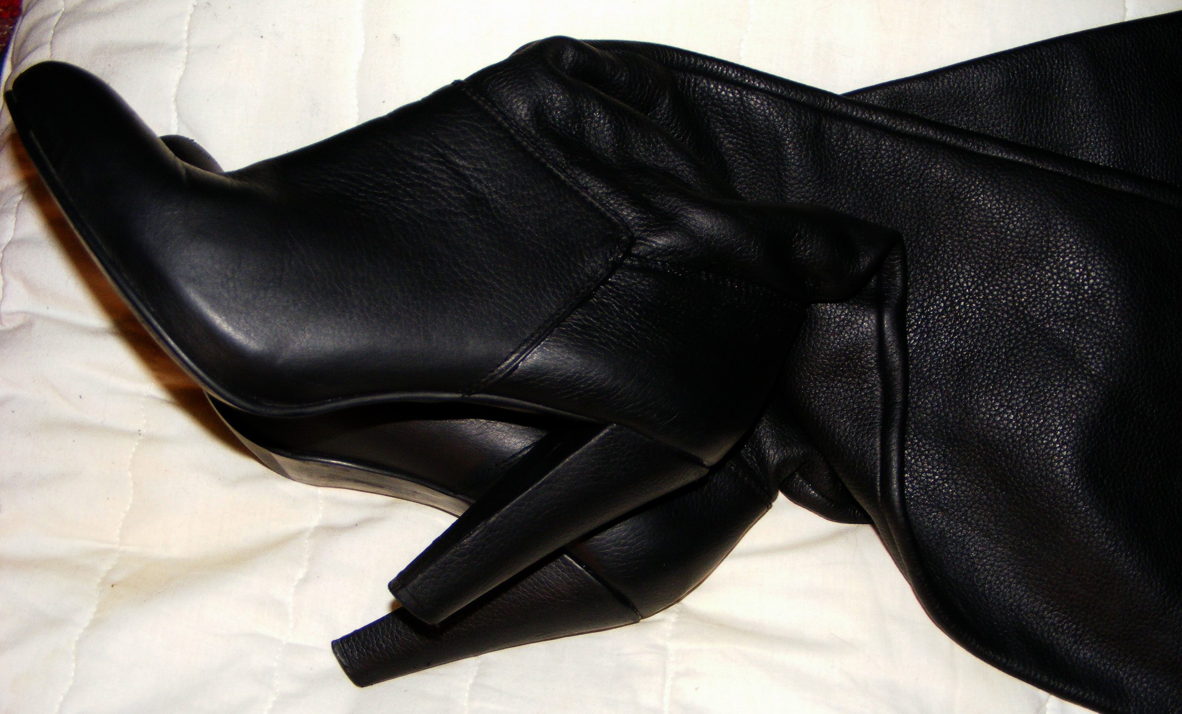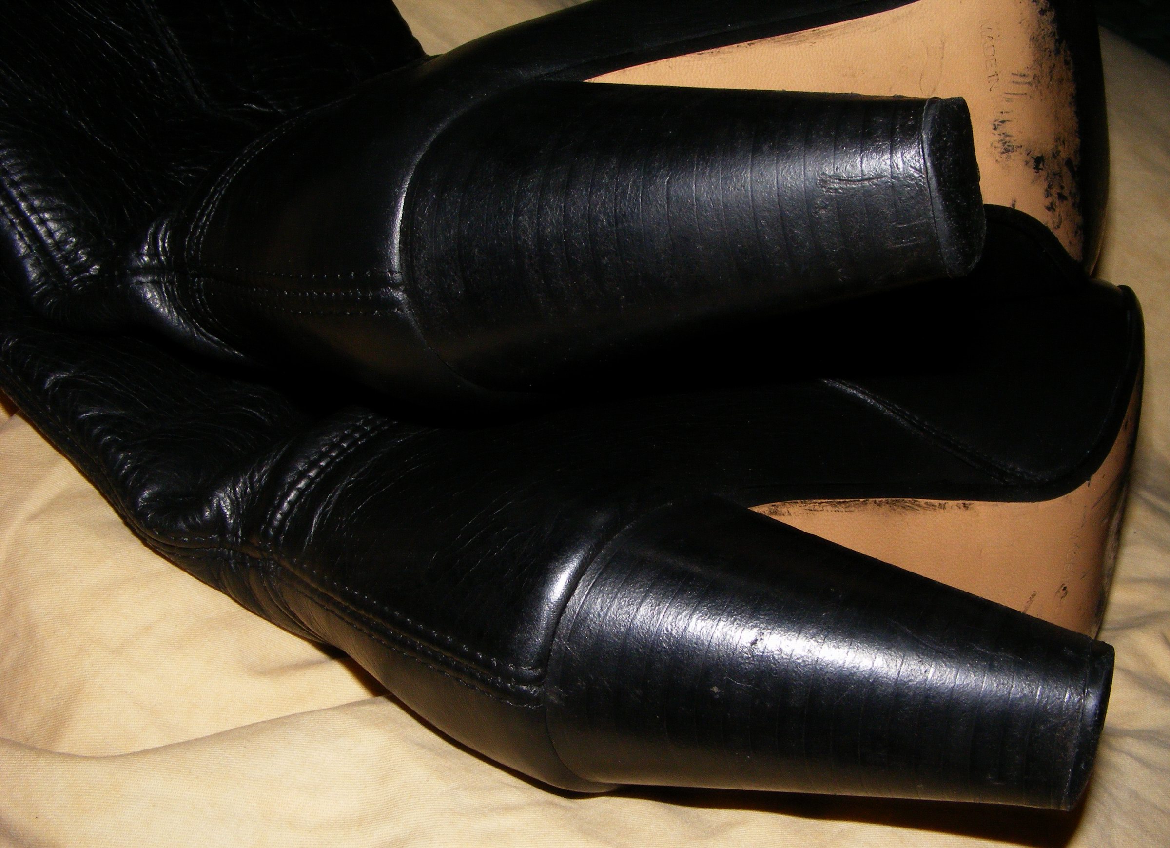 Diese Stiefel hatte meine BF im Sperrmüll gefunden und sie sollten, wie bei ihr üblich, entweder im Küchenherd oder ihrem Badeofen verheizt werden. Nun haben wir ja das "Abkommen", daß sie für mich schöne Lederstiefel in meiner Größe Zurückstellt und dann ggf. gegen Sandaletten, Ballerinas oder Pumps zum Verfeuern eintauscht. So geschehen auch bei diesen Teilen. Die Dinger habe ich bei ihr in der Küche Anprobiert - ich mußte mich Zusammenreißen, daß mir nicht dabei gleich Einer abging