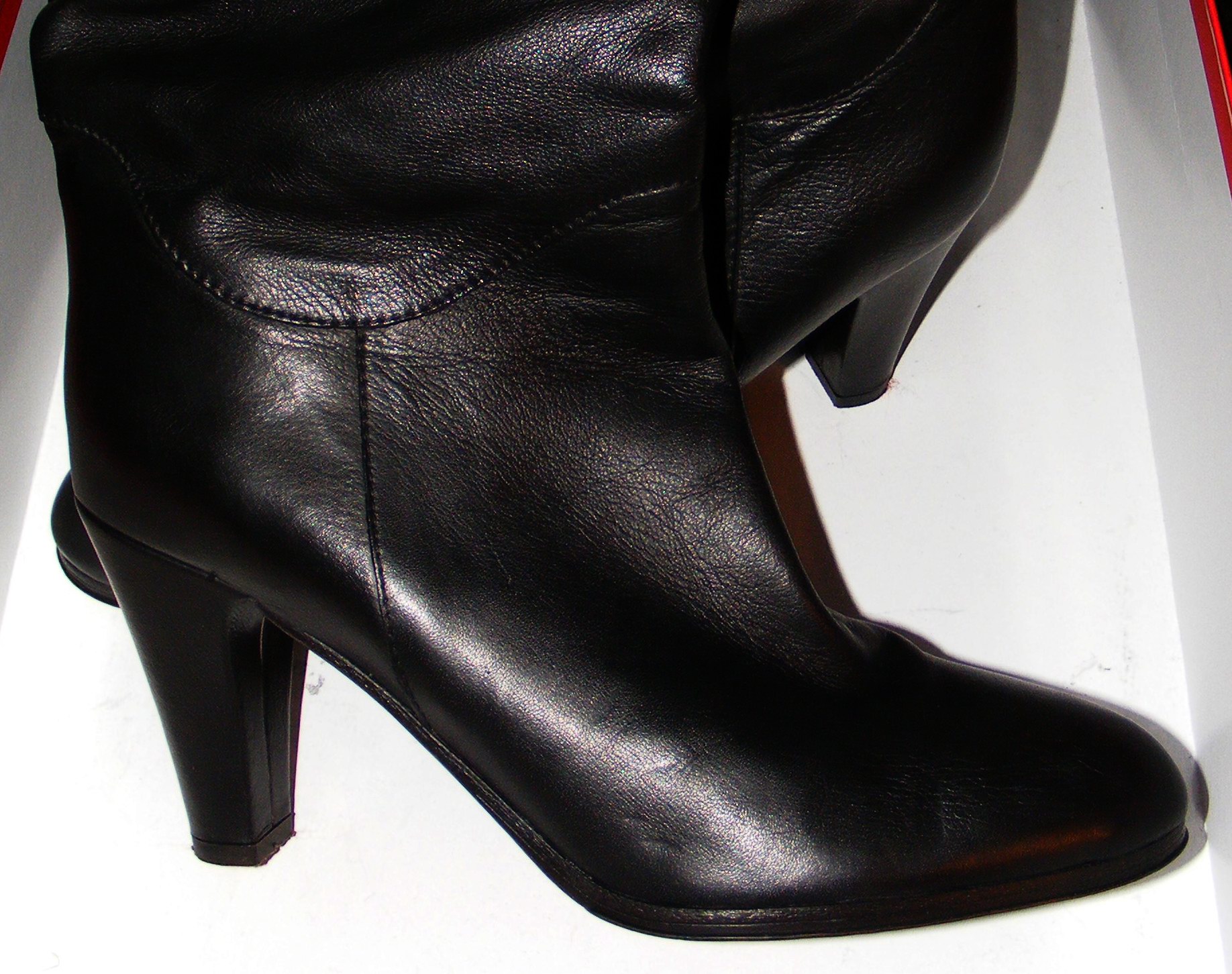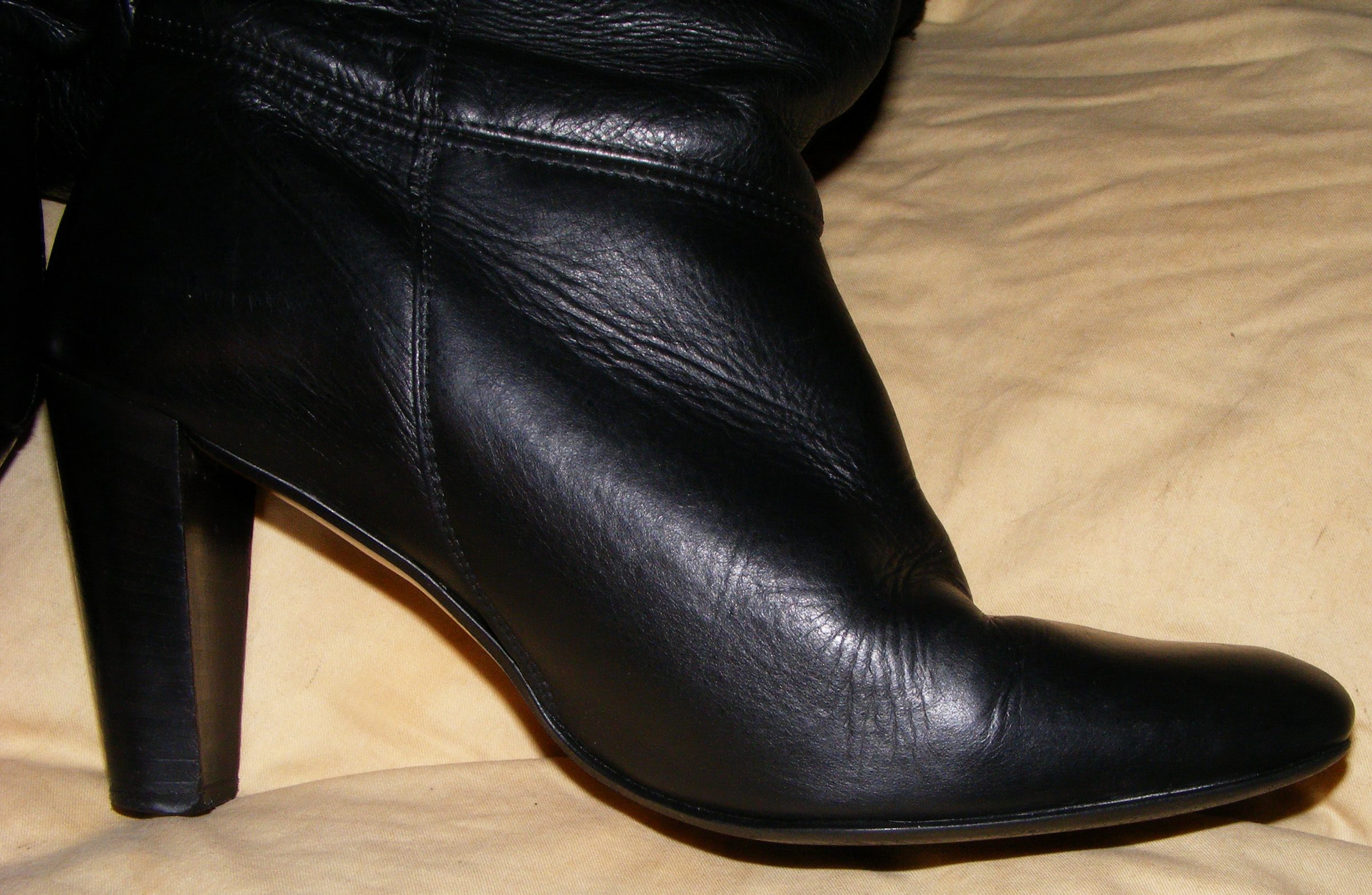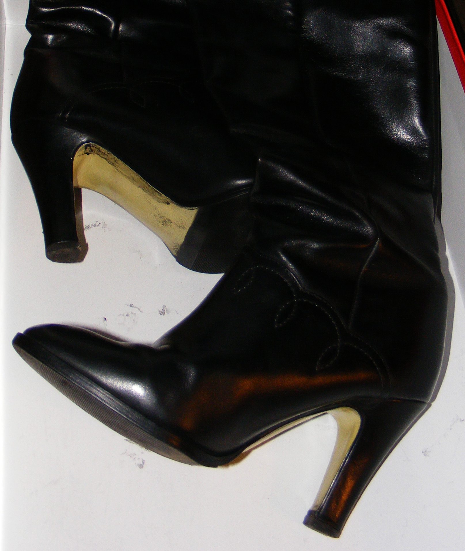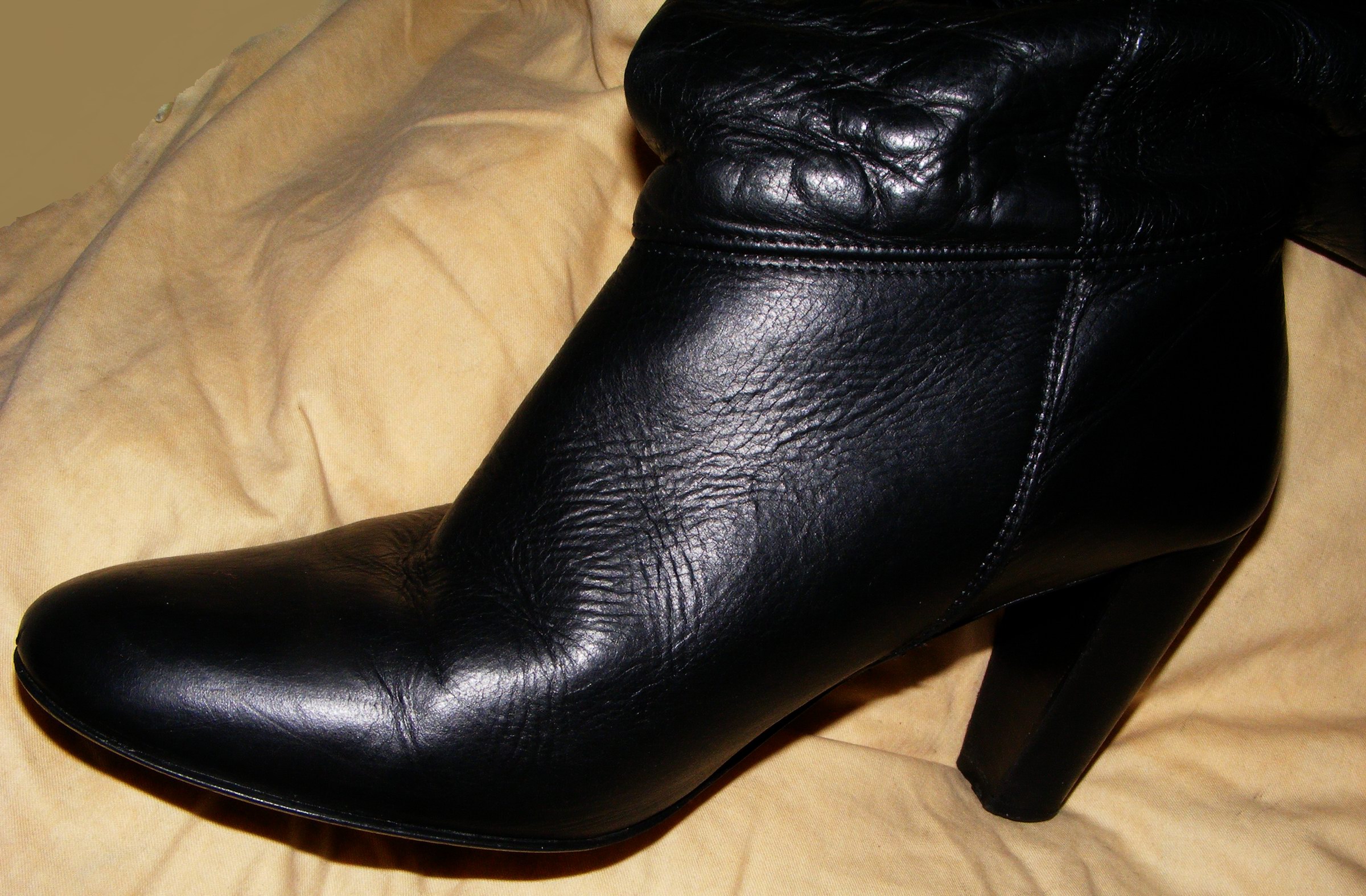 Diese Stiefel hatte meine BF im Sperrmüll gefunden und sie sollten, wie bei ihr üblich, entweder im Küchenherd oder ihrem Badeofen verheizt werden. Nun haben wir ja das "Abkommen", daß sie für mich schöne Lederstiefel in meiner Größe Zurückstellt und dann ggf. gegen Sandaletten, Ballerinas oder Pumps zum Verfeuern eintauscht. So geschehen auch bei diesen Teilen. Die Dinger habe ich bei ihr in der Küche Anprobiert - ich mußte mich Zusammenreißen, daß mir nicht dabei gleich Einer abging