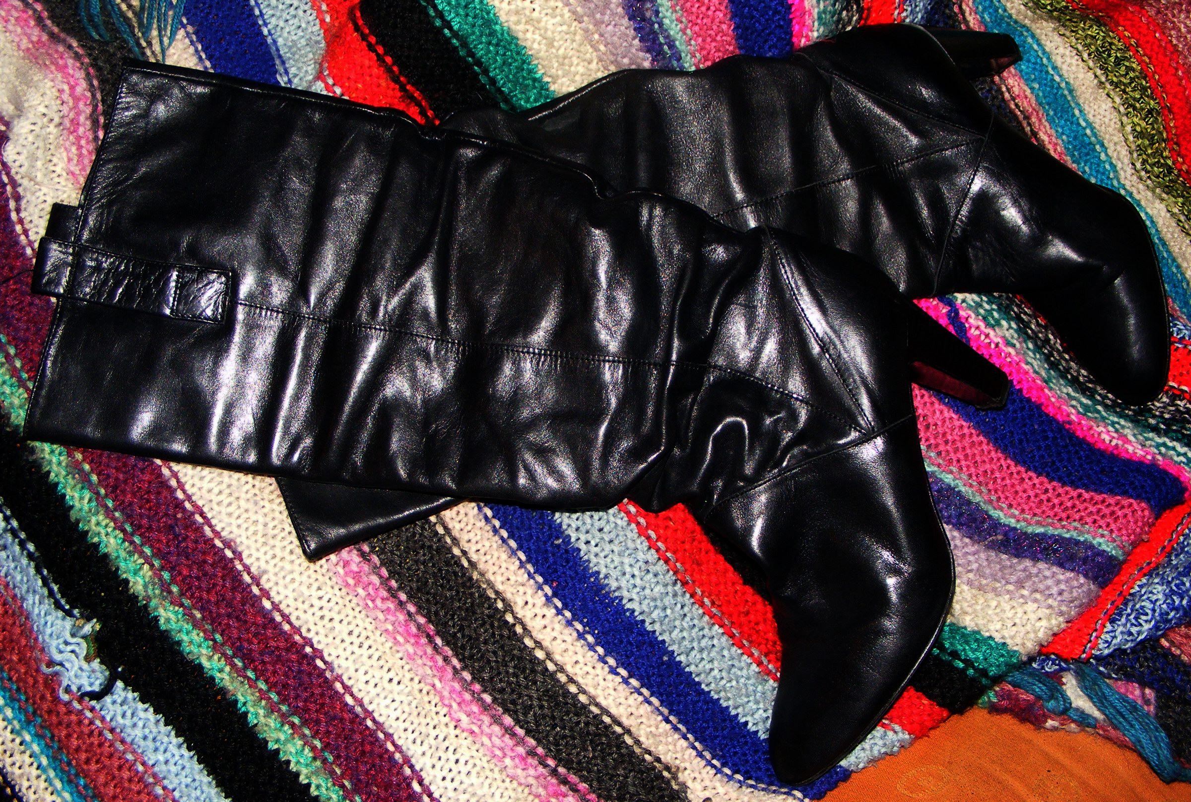 Wir legten uns Beide gegensätzlich zueinander auf´s Sofa, sodaß ich meine gestiefelten Füße auf seine Brust legen konnte. Dann gab es eine ausgiebige Waden- und Fußmassage mit beiden Händen durch die Schäfte und mit dem Mund an den Schuhspitzen, bis das Leder zellstoffweich wurde. Ich stemmte dann die Füße in seinen Schoß. Er raffte die Schäfte bis zu den Knöcheln herunter, daß er nun die Wadenmassage durch die Nylons fortführen konnte.
