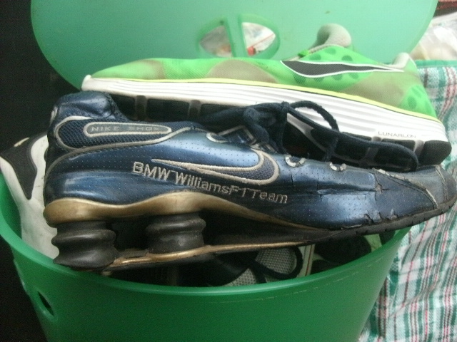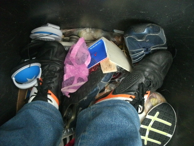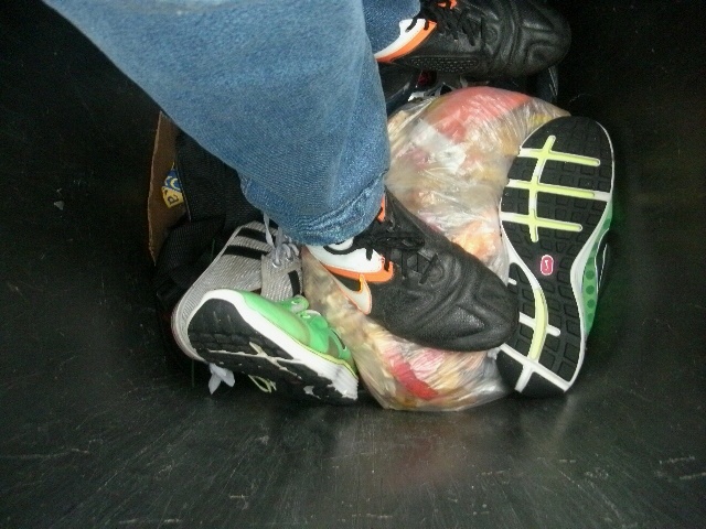 - Die Airpads der weggeschmissenen Nike TNs unter meinen Stollenschuhen geben meinen Füßen noch ein allerletztes Mal eine "Luftfederung" als sie eingestampft werden.