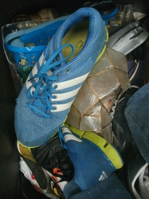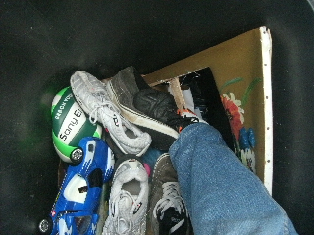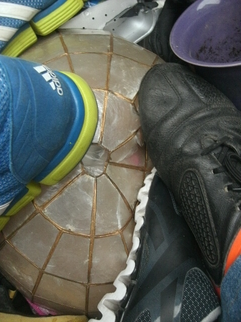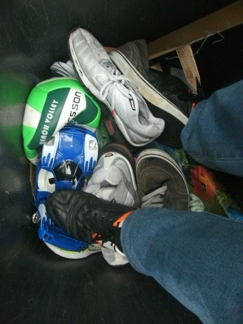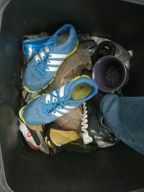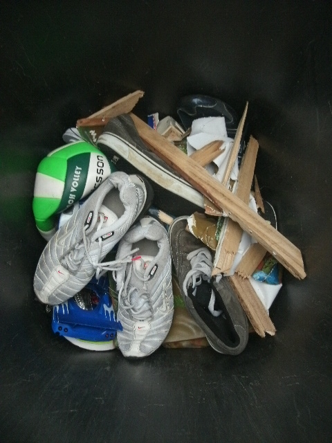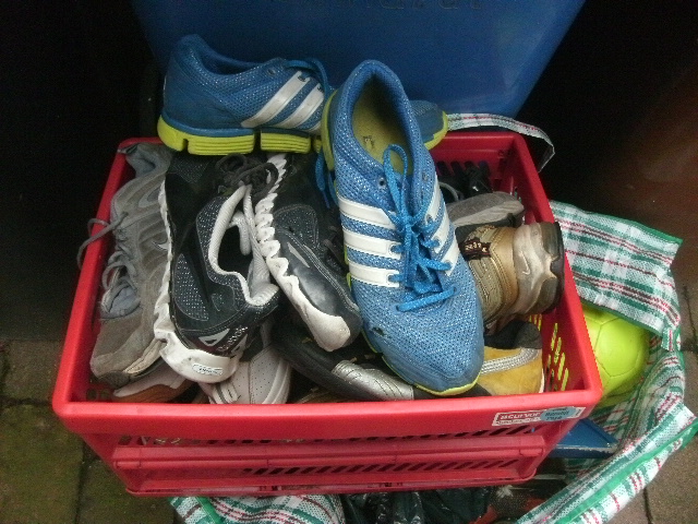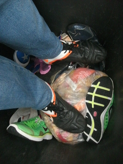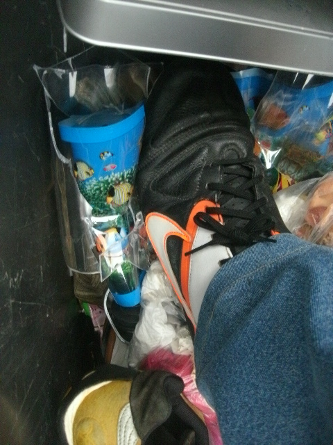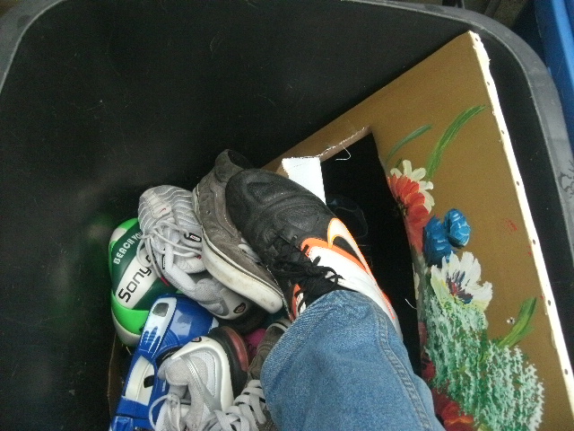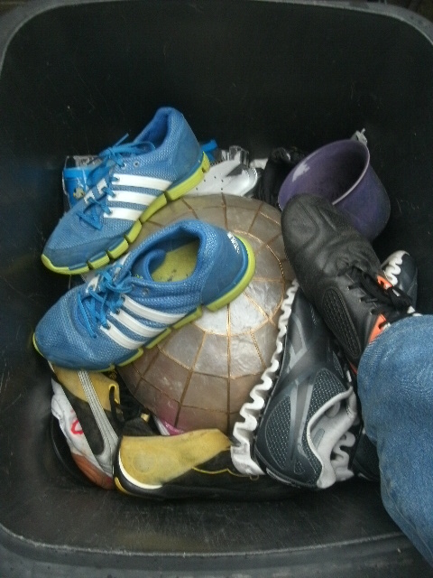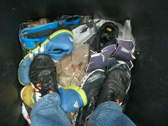 - Solche Stollen-Fußballschuhe sind echt prima geeignet für den Müll einzustampfen!