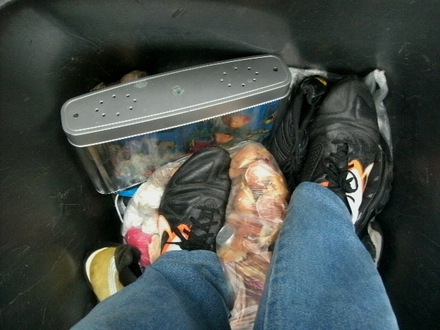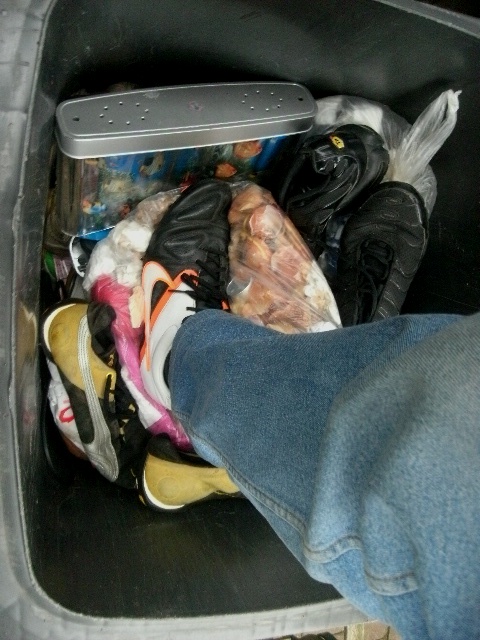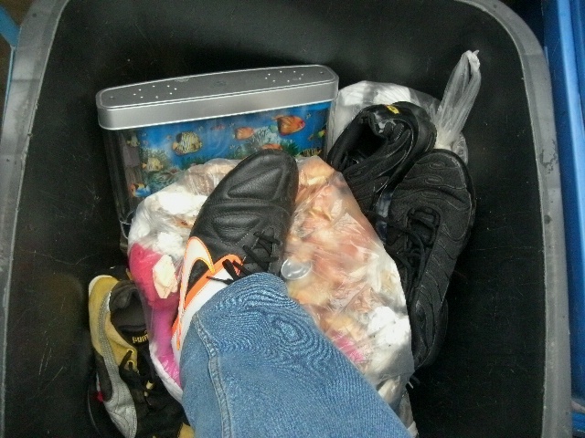 Lena ist gerade dabei, methodisch zuerst die Sachen (Klamotten) von John zu entsorgen. Den Krimskrams, welcher ihr dabei in die Hände fällt, kommt gleich weg (in die Sammeltüte bzw. -sack). Dabei muss sie allerdings beachten, dass unsere Mülltonne auch "ihre" Abfälle "schlucken" kann; also soviel wie möglich, aber eben auch auf die Abfuhrtermine verteilen. In ihrer Lebenssituation bedeutet dies aber auch, dass wenn sie mit John "fertig" ist, kommen entweder sie, oder ihr Sohn Marco "dran". Dann werden wir sehen, ob dann zuerst Heels, Ballerinas und Stiefel, Wäsche, Handtaschen und was sonst noch alles an Frauenmüll "weg kommt", oder ob dann Marco Sneaker und Sportklamotten ausrangieren muss und die in unsere Mülltonne wandern werden.