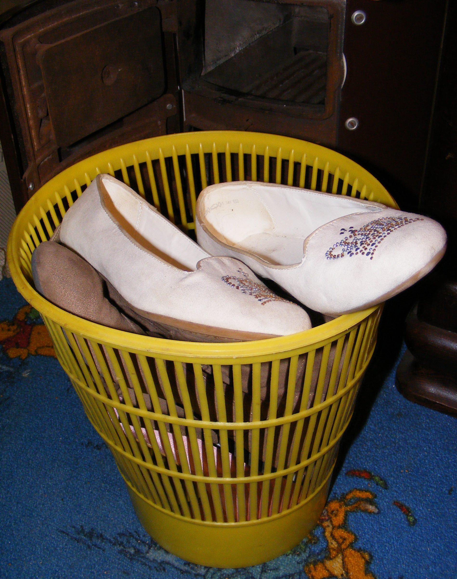 Meine Damals wie Heute geliebten DDR-Mokassin-Pumps, kurz vor dem seinerzeit unvermeidlichen Ende im Ofen. :cry: :cry: :cry: