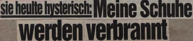 "Natürlich hatten wir ein privates Schuhlager! Mama hatte viele Paar Schuhe für uns Kinder und für sich, die Omi und auch für Papa reserviert. ... Kinderschuhe in verschiedenen Größen. Für Papa herrliche Herrenhalbschuhe, für sich schöne Damenstiefel, für den Winter Hausschuhe ...! Welcher Geschäftseigner hätte das nicht gemacht, für seine Familie zu sorgen! ... Mama sagte zu mir, daß wir die Schuhe verbrennen müssen. Ich mußte, damit es der Franz durch das Werkstattfenster nicht sieht, immer zwei Paar Schuhe in einer Tasche ins Waschhaus tragen und Stück für Stück von dieser herrlichen Friedensware verbrennen. Solche Ereignisse brennen sich ein, sie bleiben in Erinnerung! Herrliche Schuhe, schwarze, braune, feste, feine, welche für den Winter, leichte für den Sommer, gingen durch den Schornstein!"