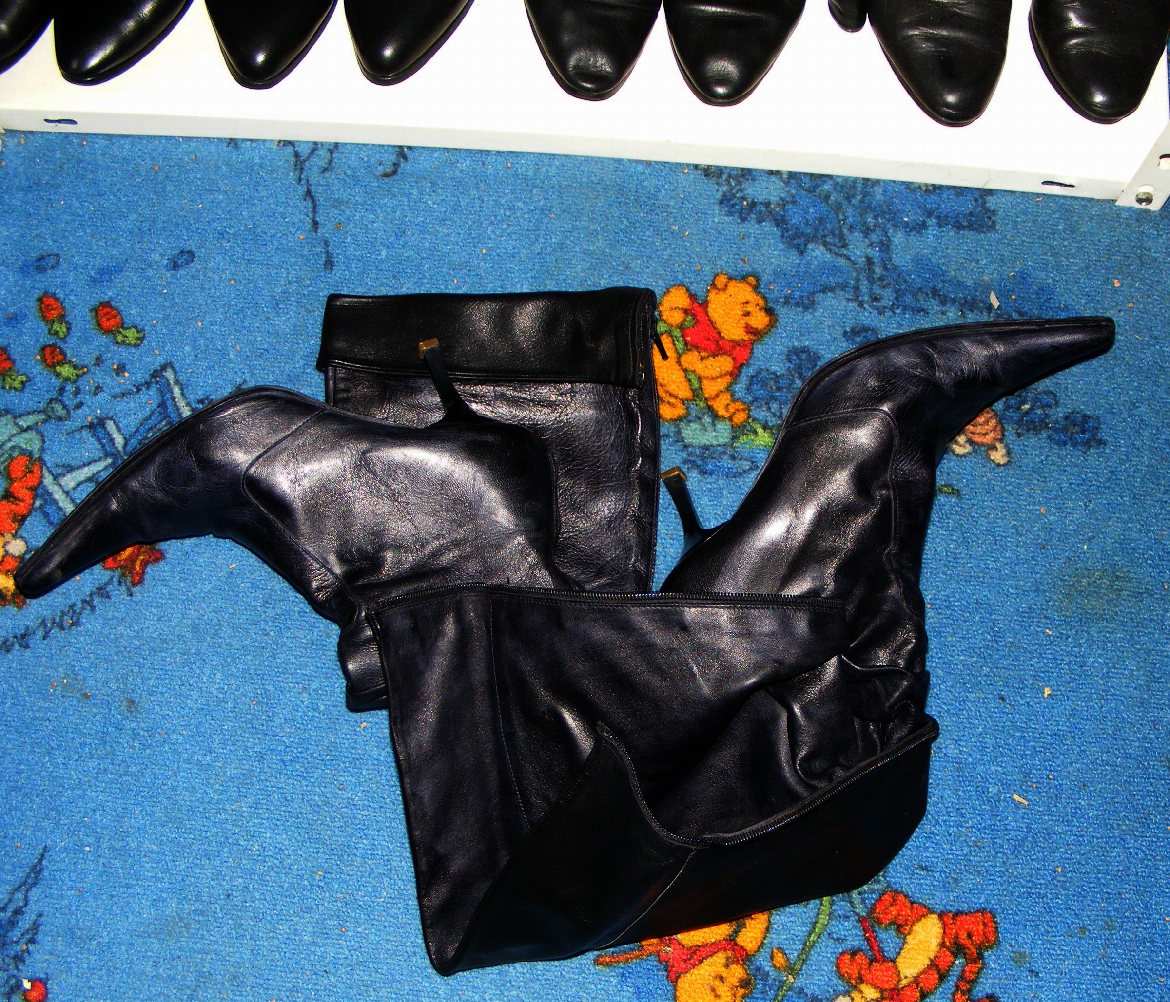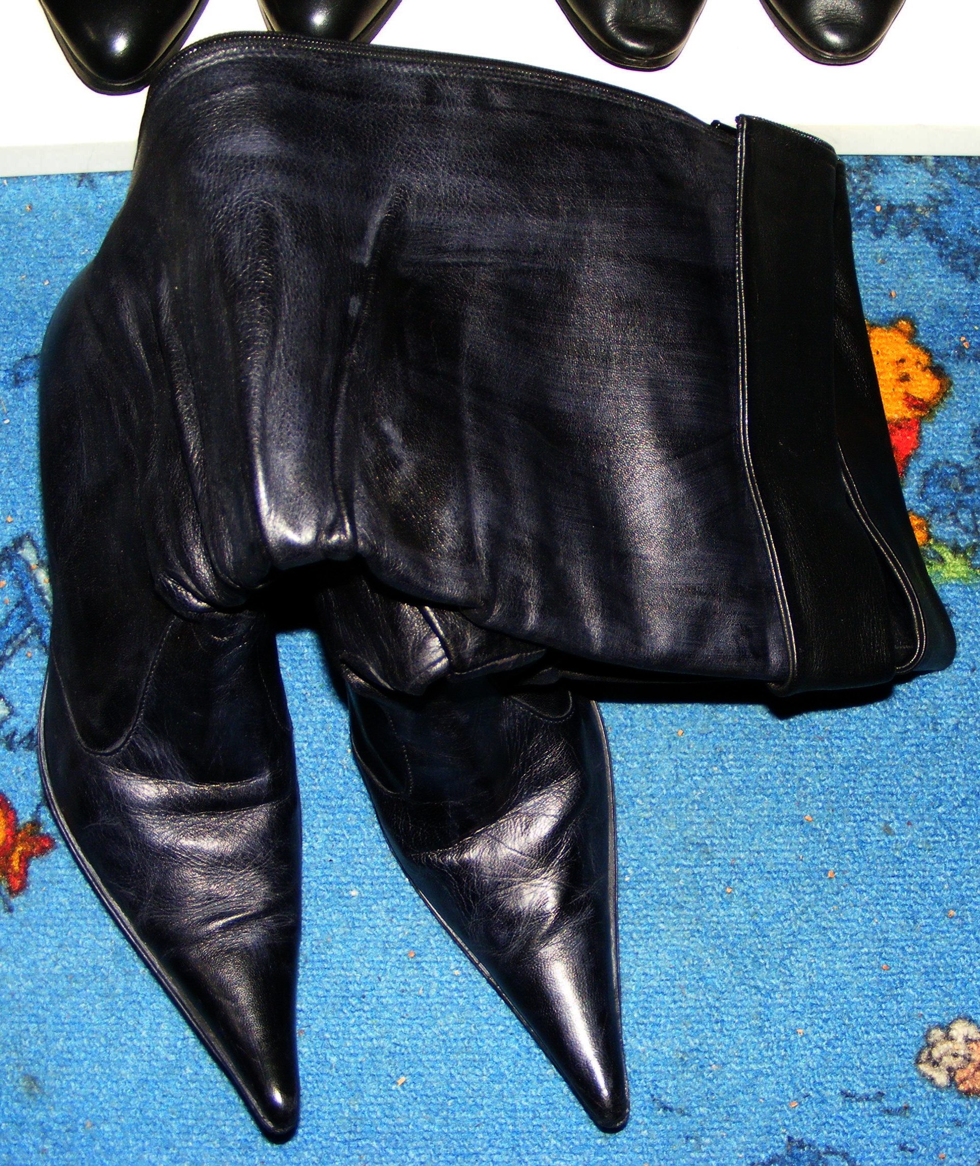 Diese grausam abartigen Dolchspitzen-Stiefel - zum Glück Heute nicht mehr auf der Straße zu Sehen - kaum zu Glauben, daß mal Jemand damit ernsthaft Herumgelaufen war! Na, ich zumindest nicht! Die NT hat sich fast Kaputtgelacht: "Ab in den Ofen mit dem Mist!" :twisted: :lol: