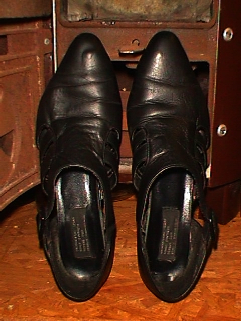 Zufälligerweise sind das die Schuhe, die mit hautfarbenen Nylons optisch besonders gut zu langen schwarzen Lederhosen passen, somit tue ich mich noch ein wenig schwer damit, sie Wegzuwerfen. :roll: