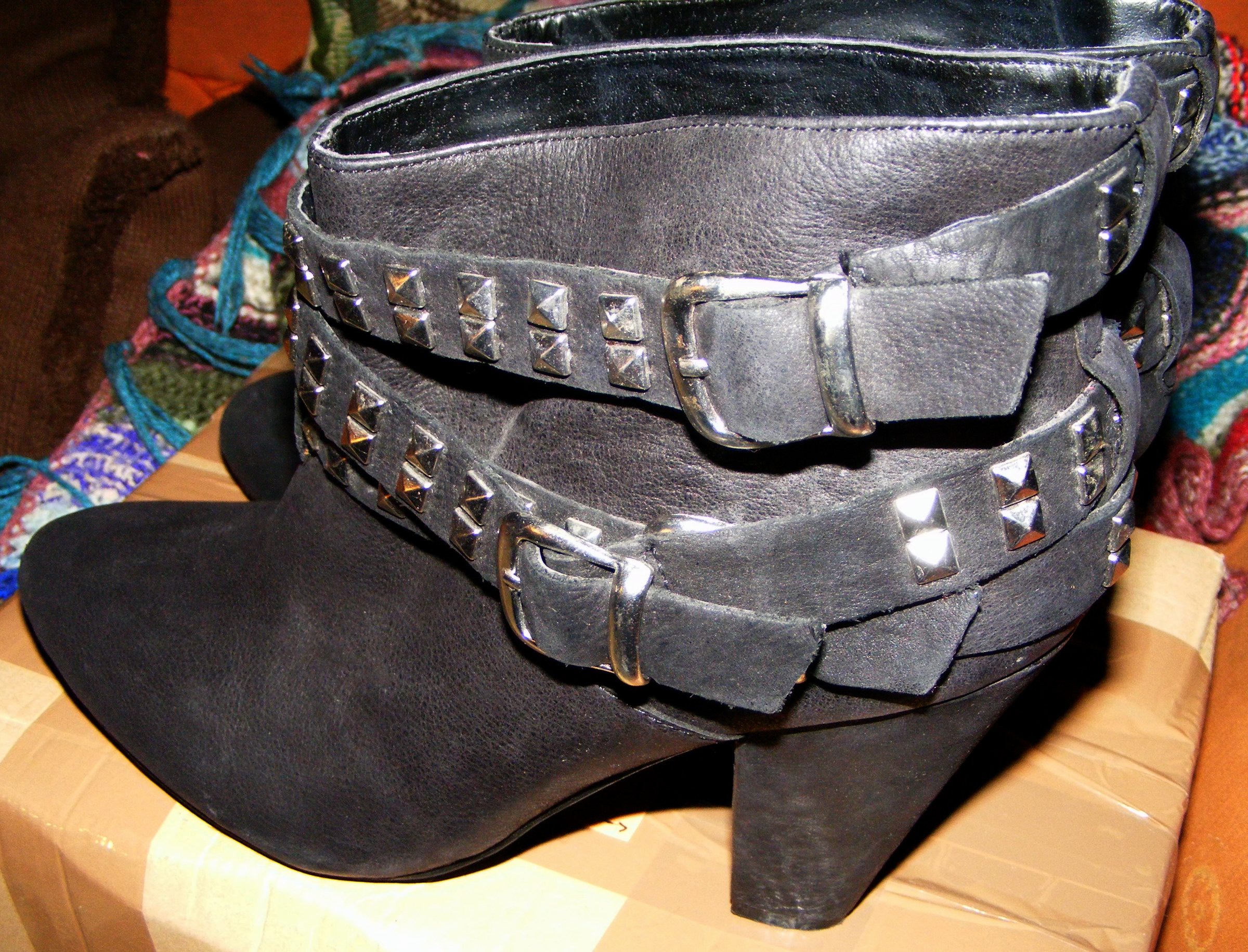 Diese Echtlederteile hatte ich eilig dem Müllmonster entrissen - eigentlch zuerst zum Verbrennen. Doch zu Hause habe ich festgestellt, daß es passende Zaras sind. Wir haben sie sofort, noch unaufgearbeitet, gleich im Heizkeller vorschriftsmäßig Eingeritten. :)