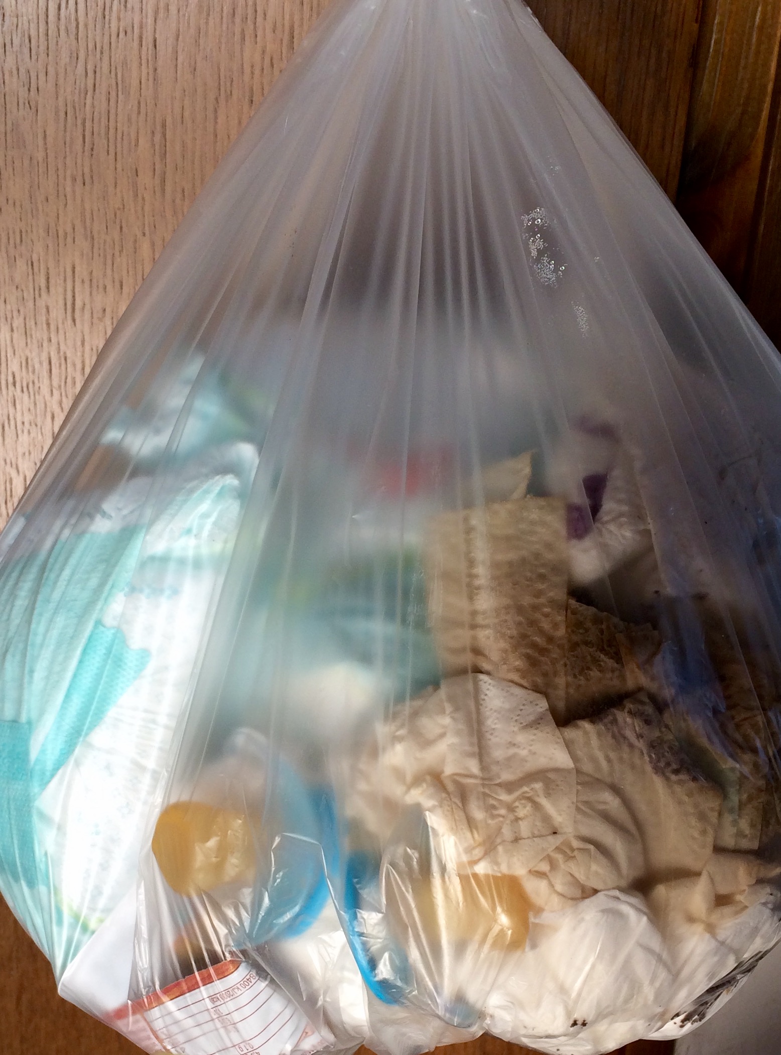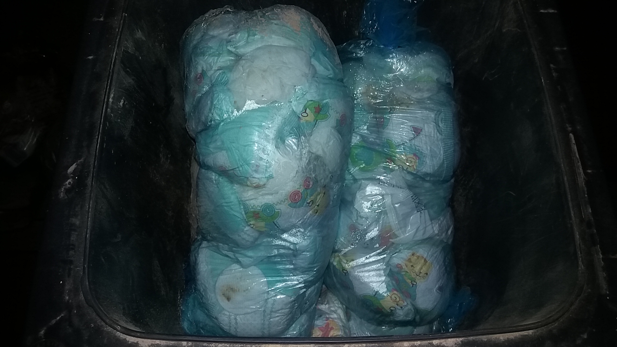 Wäre sicher ein riesen Spaß gewesen, wenn du den Müllsack unten aufgeschnitten hättest, während er an der Tür hing. Dann hätten sich Schnuller und Windeln schön vor der Tür verteilt