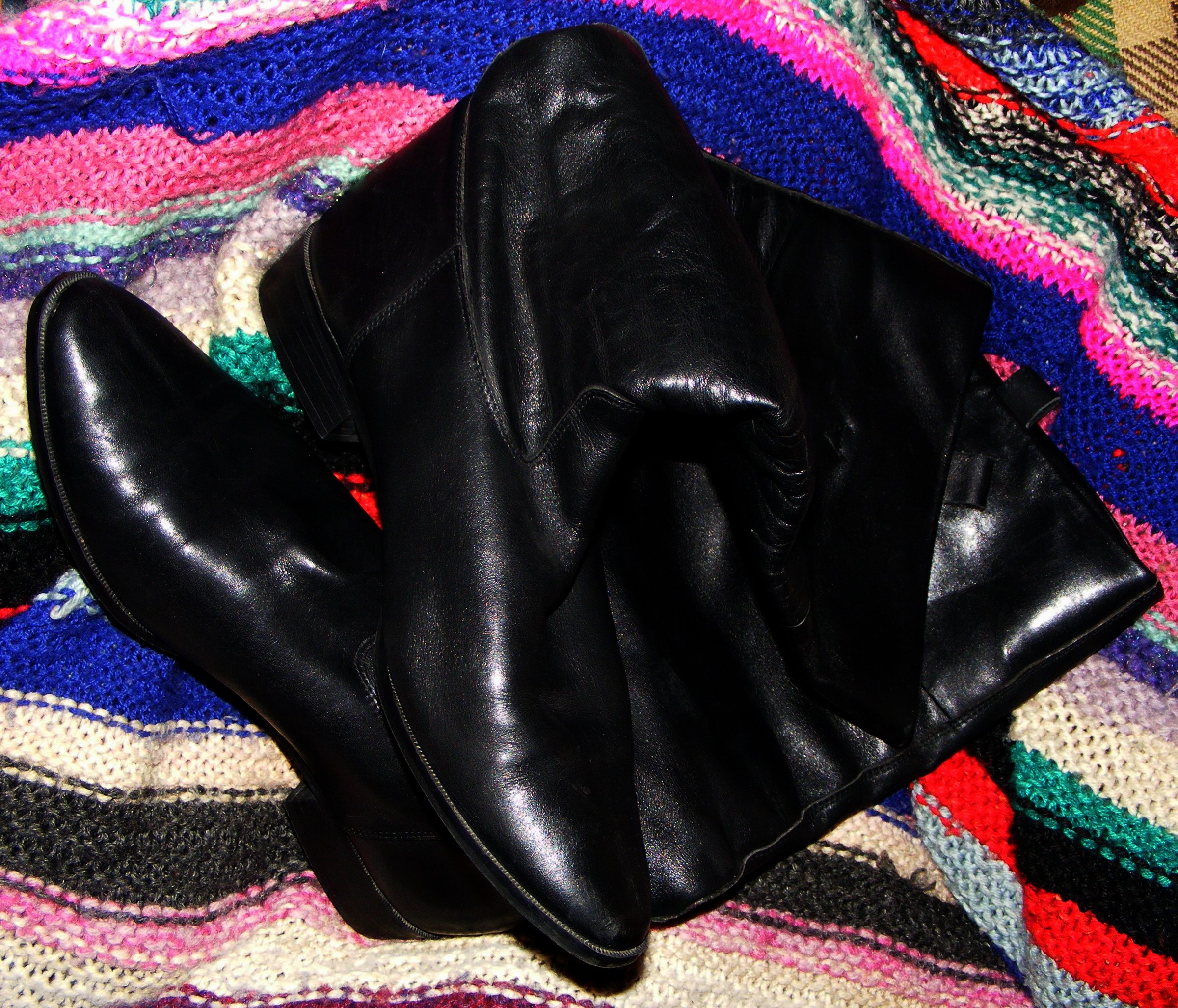 Vor genau einem Jahr erhielt ich diese zarten 80er Schnürstiefelettchen in Größe 39 von meiner BF, wir hatten sie seinerzeit vorm Küchenherd verschont. Danach gingen sie zu meiner NT, zum "Einlaufen", mittlerweile passen sie mir perfekt. In den letzten Tagen habe ich bei uns beobachtet, daß die bisher "auf der Straße" dominierenden schwarzen Ballerinas witterungsbedingt in großer Zahl durch solche schmalen schwarzen Schnürschuhe "ersetzt" wurden. Besonders in Kombination mit den von euch zumeist so geliebten hellblauen Jeans - Teile aus echtem Leder sind bei den "Breitfüßigen" ein wahrer Augenschmaus! (Sabber)
