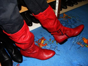 Liebe Katrin, vielleicht kannst du mir beantworten, ob die DDR-Mode auch Stiefel dieser Art zu bieten hatte? Haben die Herde und Badeöfen der DDR vielleicht auch solche Stiefelschäfte zu futtern bekommen?