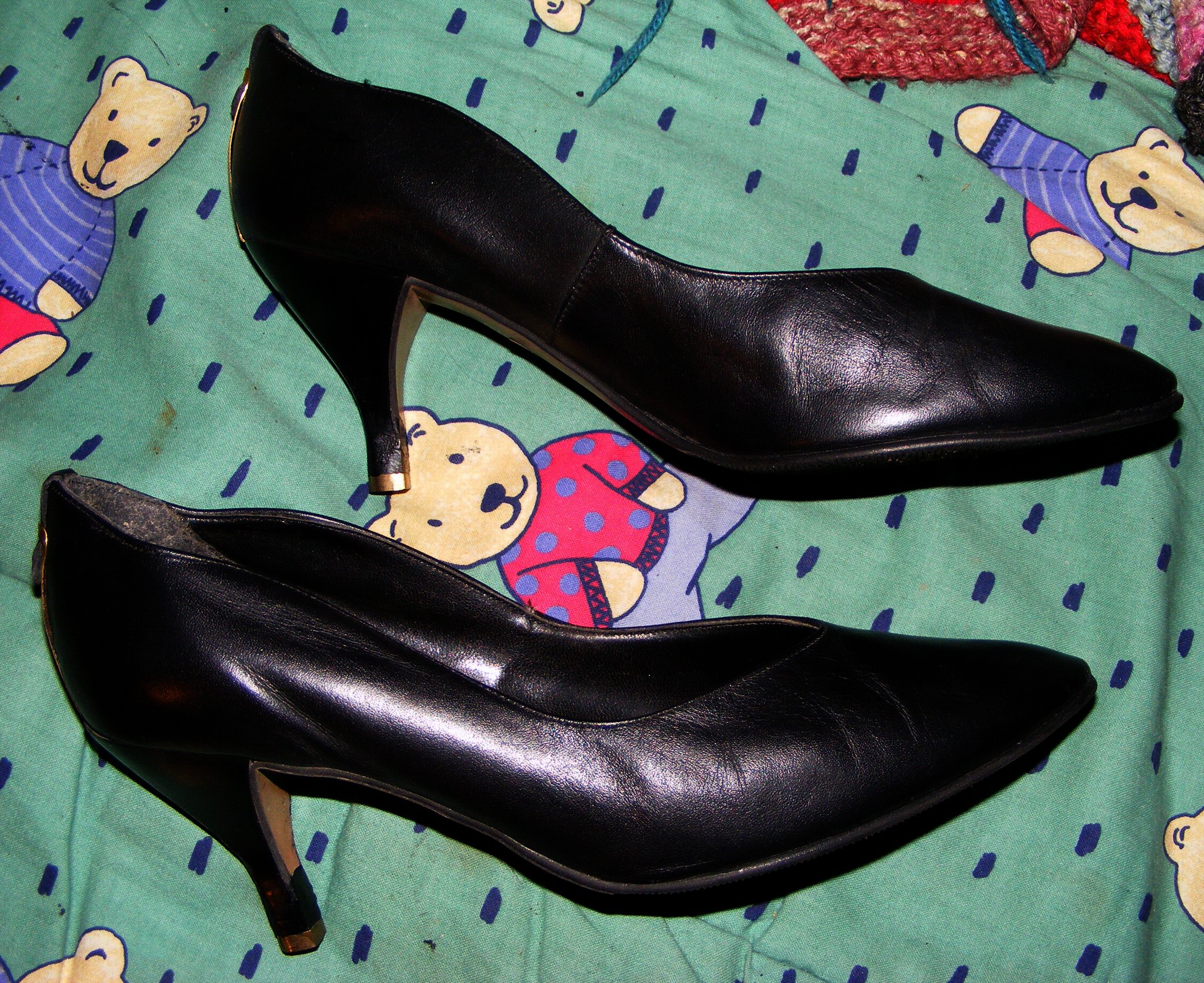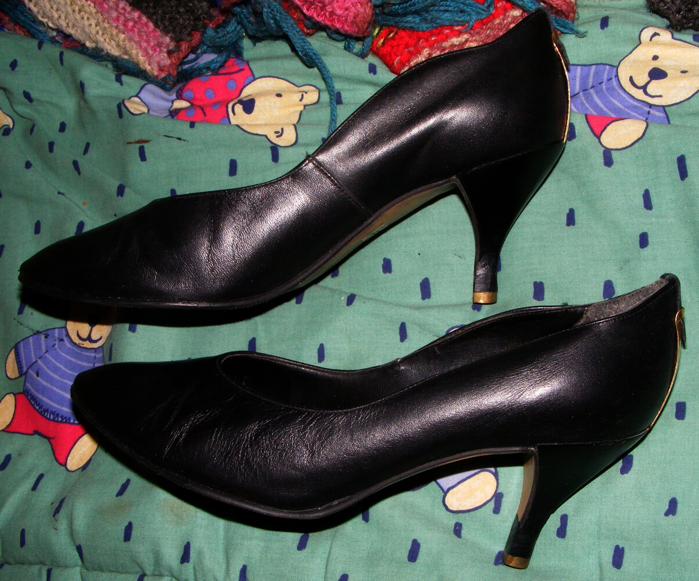 Dann ein Paar (neu im Karton) gefundene Nietenpumps. Die sind mir zwar zu klein für meine Füße, aber die Spitzen dieser zum Glück sauberen Echtleder-Teile lassen da eine schuhliebende Frau doch an ganz andere Verwendungsmöglichkeiten Denken! :D