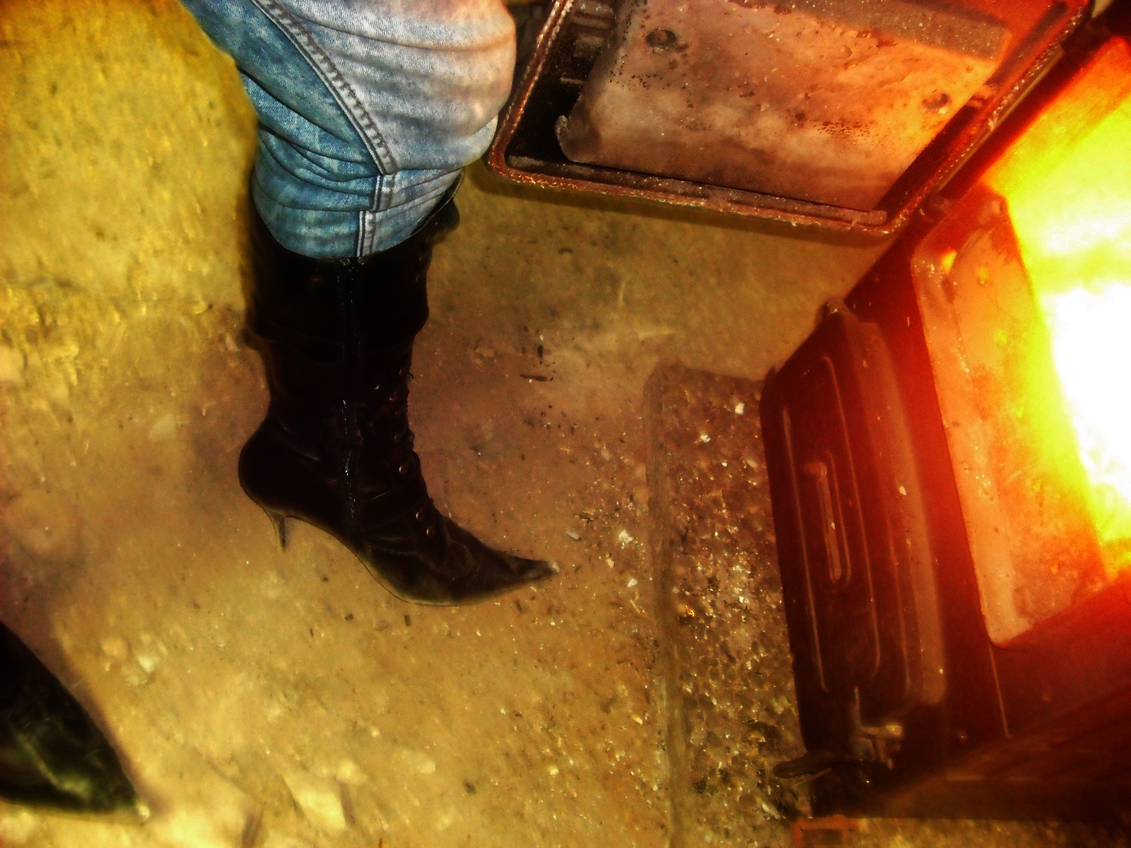 Mit kernigen Lederschuhen kann man ein so richtig grausames Höllenfeuer im Ofen entfachen, daß der Widerschein der Flammen beim Zusehen das Gesicht schmerzen läßt! :twisted: