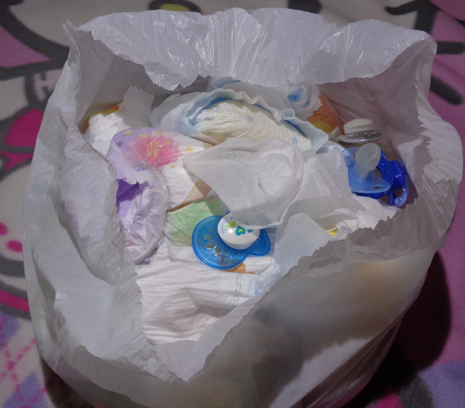 Und schon wieder ein Müllbeutel voller windeln in der Mülltonne gelandet bald wird man von den Schnullern nichts mehr sehen